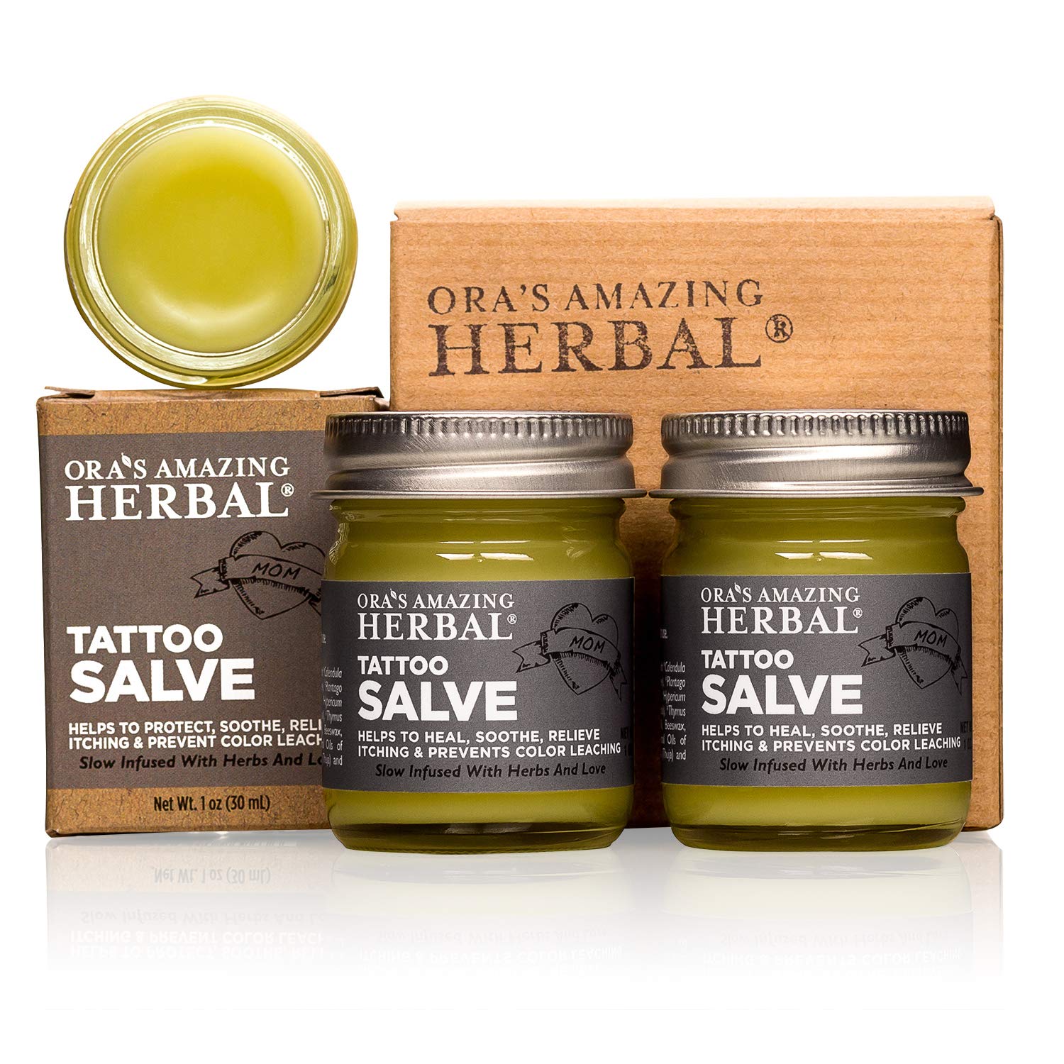 Ora's Amazing Herbal, Tattoo Salve, Tattoo Aftercare Balm| Color Enhancement for Old Ink | Itchy Relief Cream Ointment for New Tattoo| Paraben Free, Plastic Free| | Faster Healing | 1 oz 2 Pack