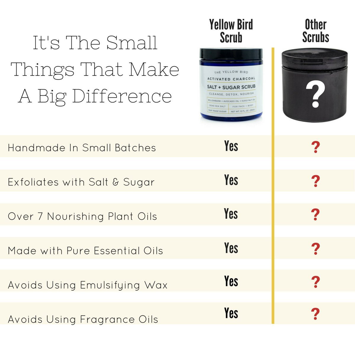 - Baby Soft Skin - Rediscover the skin of your youth. Hydrate and exfoliate with our salt & sugar scrub to get the most supple skin. Made with mild wholesome ingredients that wonât irritate. Use as a gentle face scrub and exfoliating body scrub.