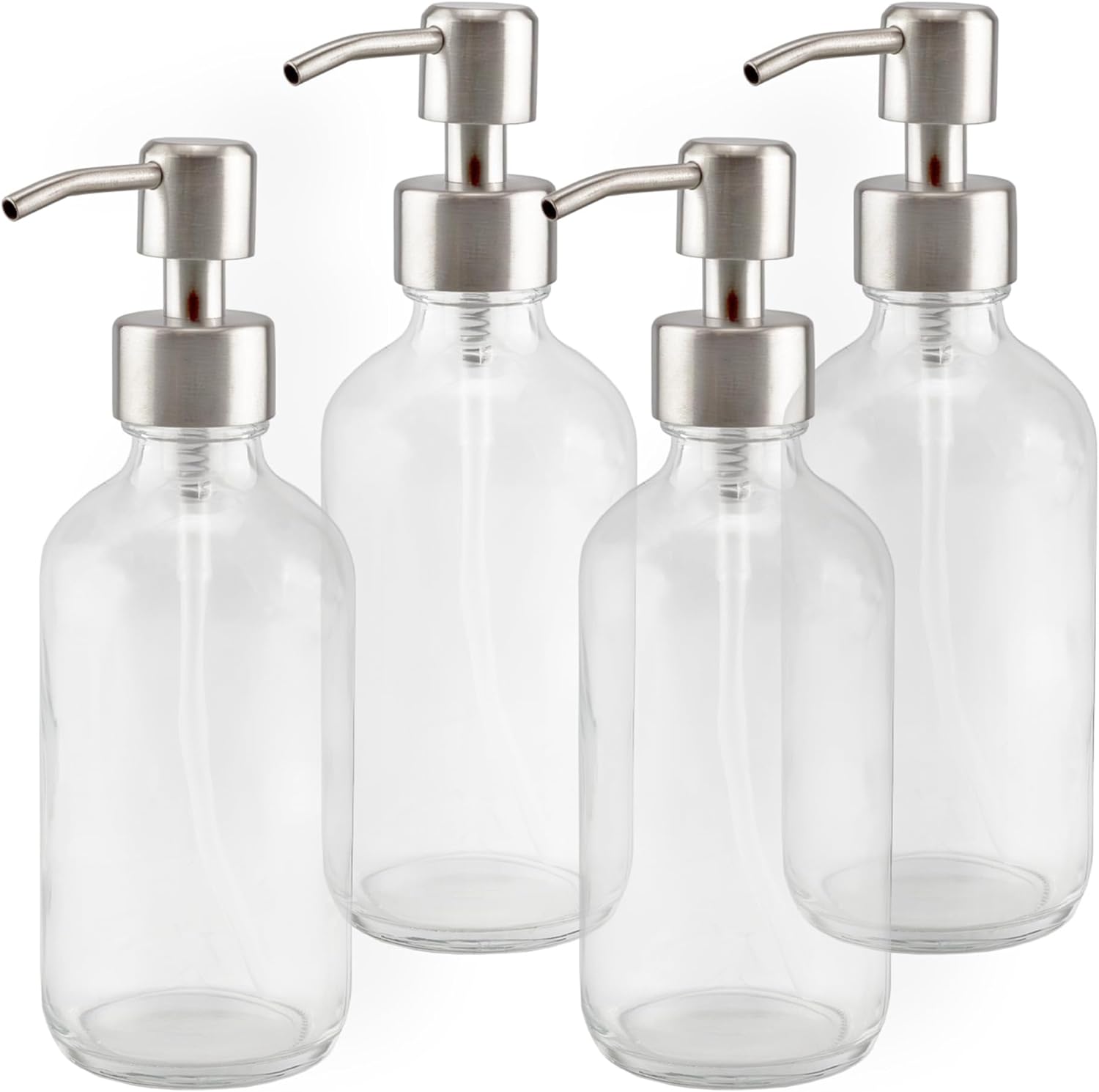 - VALUE 4-PACK: You get four 8-ounce clear glass bottles & 4 stainless steel pump tops