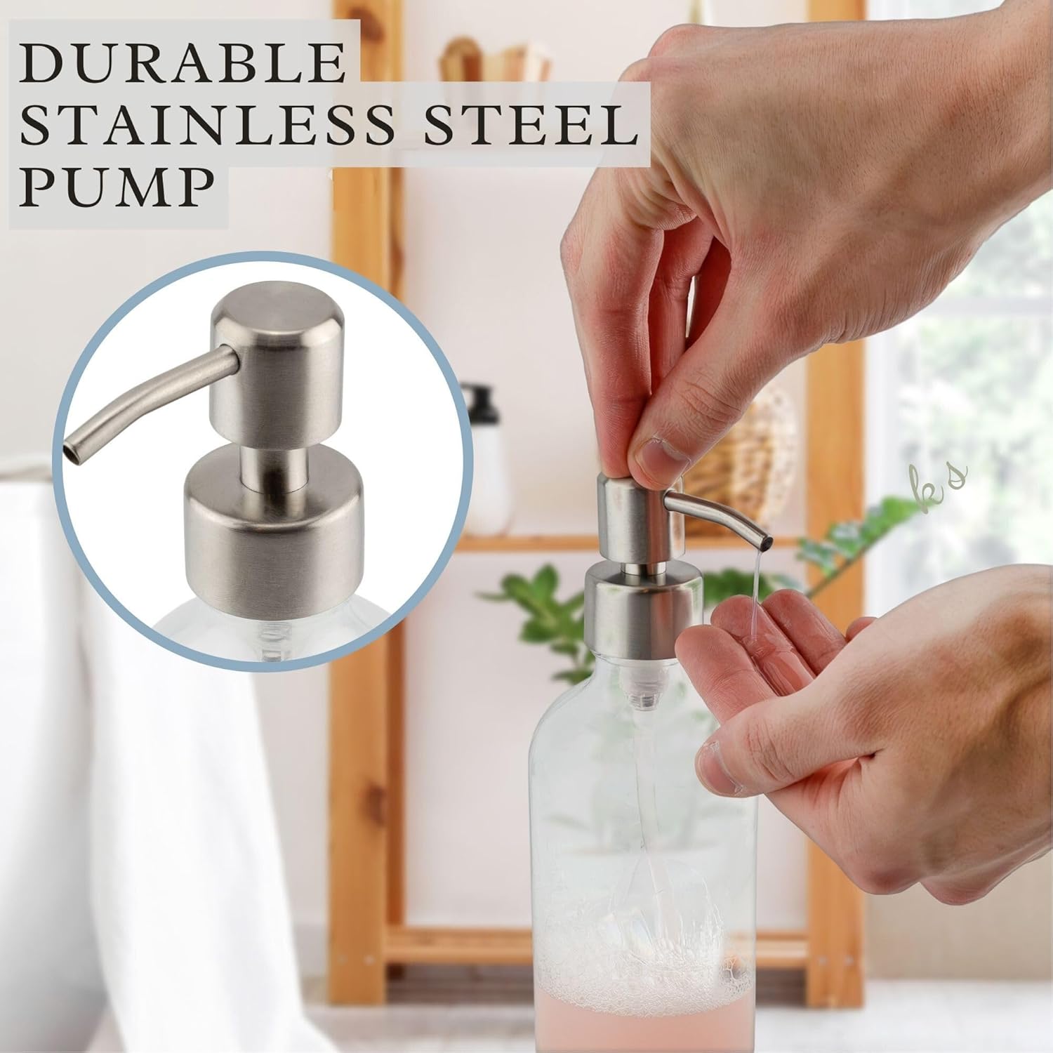 - SAFE & HEALTHY: Glass is the best storage material for aromatherapy & beauty treatments; exterior of pumps are stainless steel; interior of pumps and dip tubes are BPA-free plastic