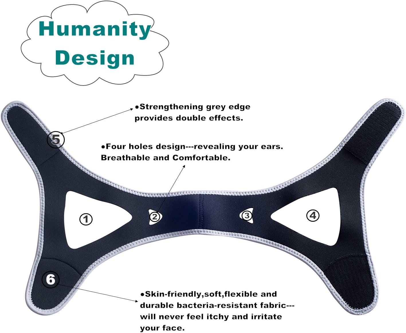 - 2.HUMANITY and SCIENTIFIC DESIGN---âFour fully wide adjustable velcro straps make sure that you can perfectly adjust the size and tension according to your need.âTriangle design can solid fixed throughout the night without sliding off.âRevealing your ears, breathable and not oppressive,giving you more comfort.âStrengthening edge provides better anti-snoring effects.