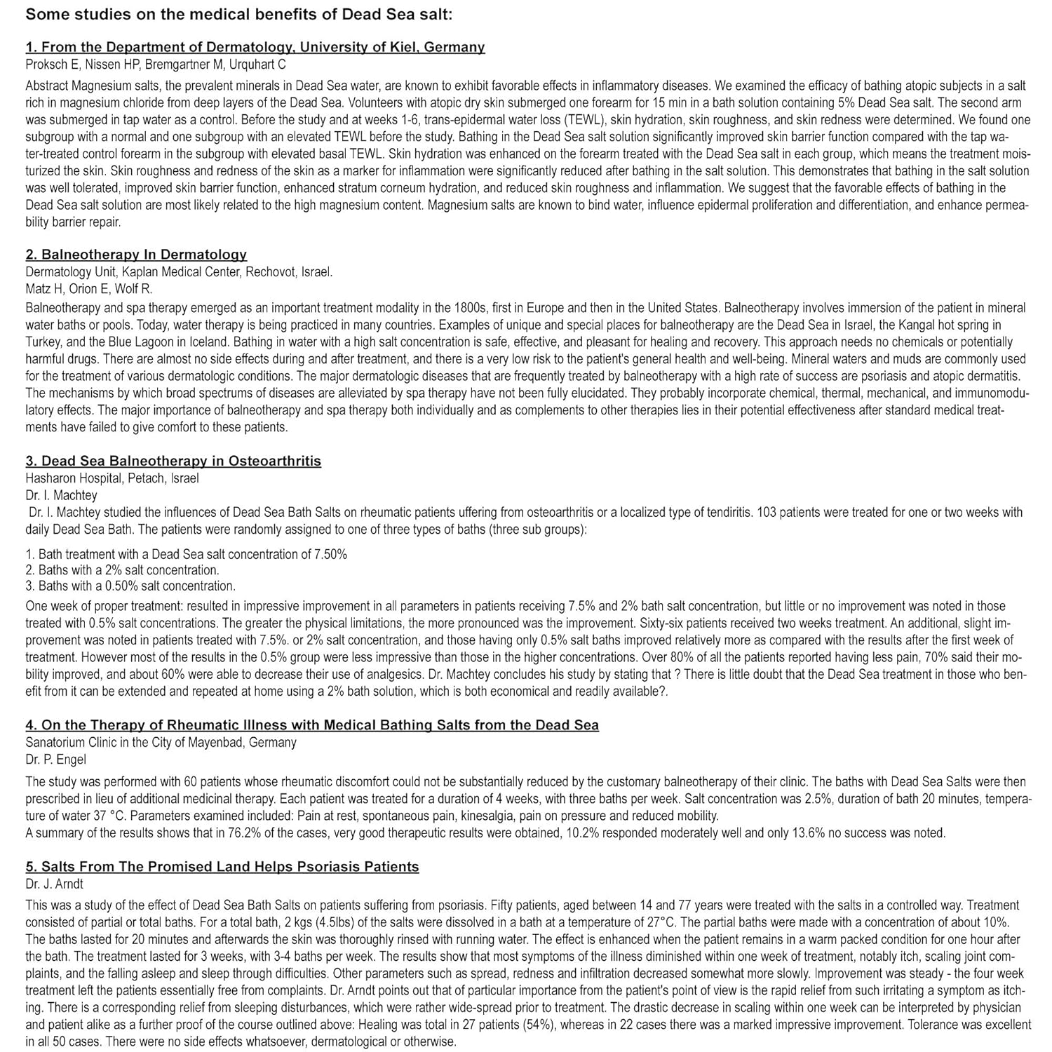 - Published scientific studies show that 80%-90% of patients undergoing Dead Sea mineral treatments experience significant improvement in skin conditions