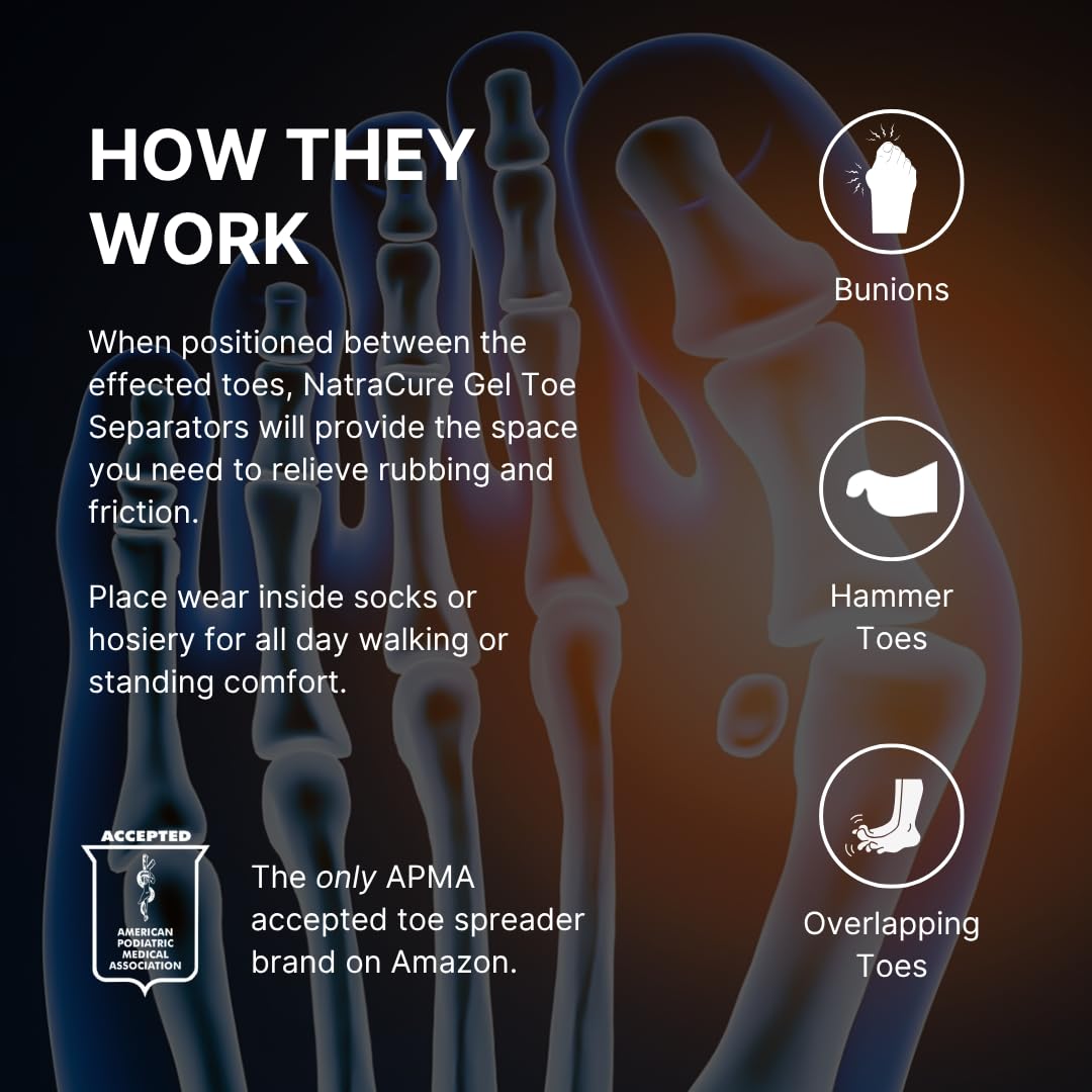 NatraCure Gel Toe Spacers - Helps with Bunions, Corns, Blisters, Rubbing & Overlapping Toes - Toe Separators for Women & Men to Correct Toes - 12 Pack
