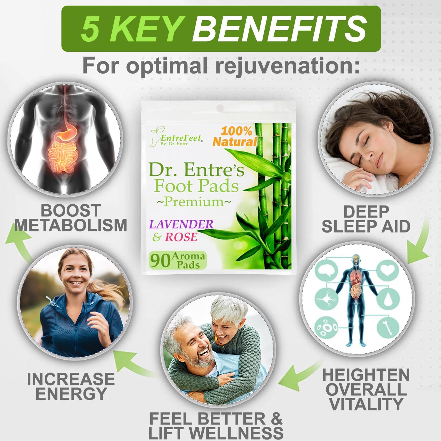 Dr. Entre's Foot Pads: Premium Foot Pads to Feel Better, Sleep Better & Relieve Stress | Effective Organic Lavender & Rose Foot Patches | 90 Pack