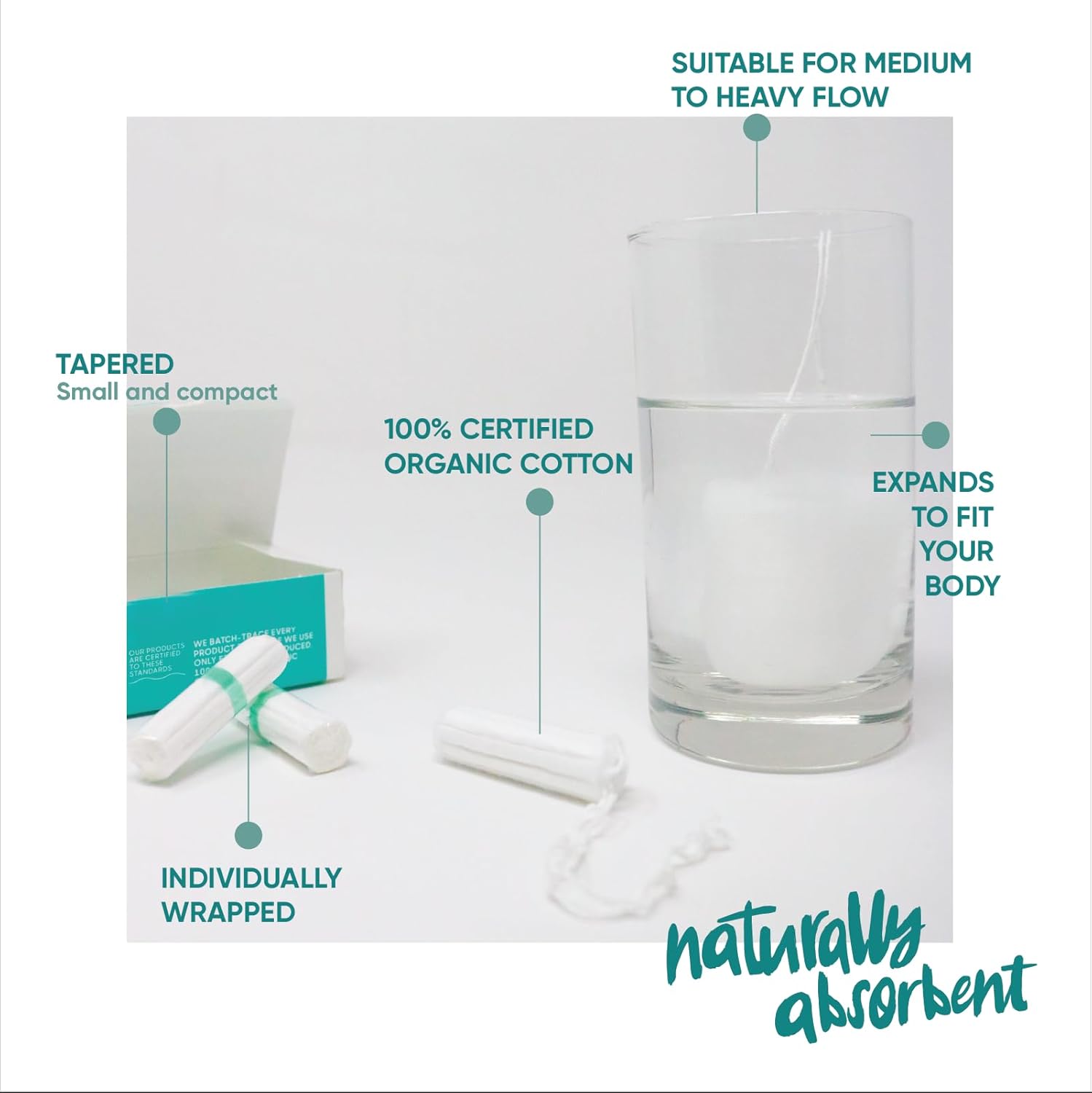 - 360° PROTECTION - Expand like a flower to stop your flow in her tracks! Oi tampons are comfortable and absorbent, naturally expanding to fit your body.