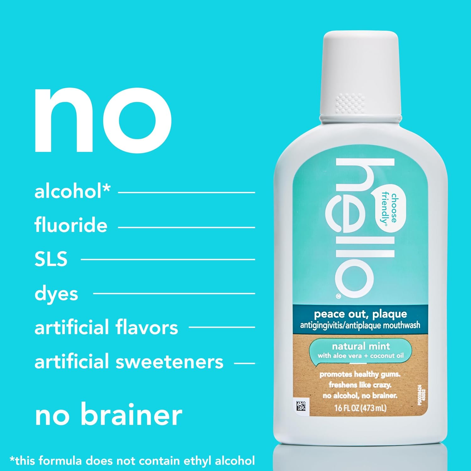 - WHAT I’M GETTING: Three (3) 16 fl oz bottles of hello Peace Out Plaque Fluoride Free and Alcohol Free Mouthwash*, Natural Mint oral rinse