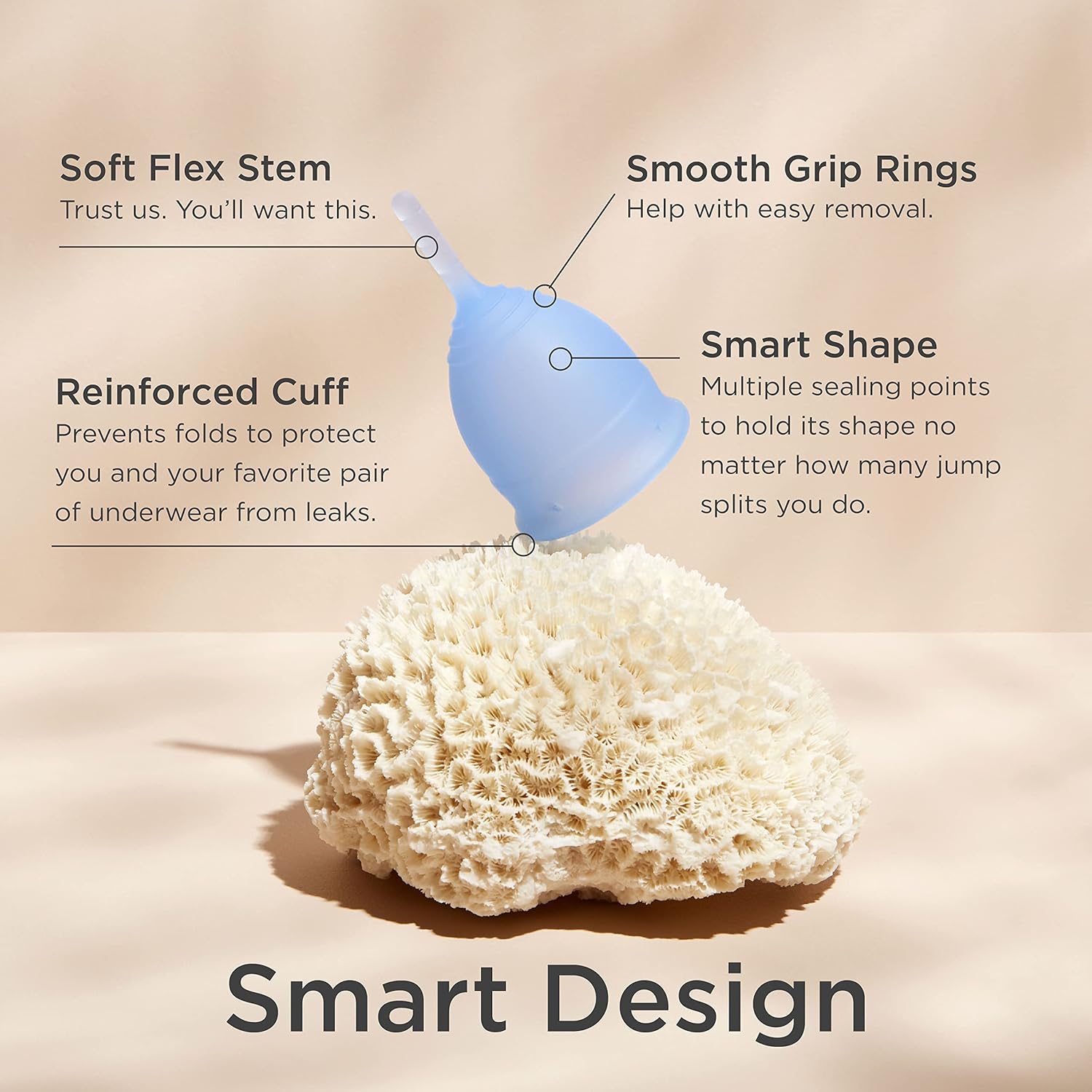 - COMFORT MADE SIMPLE: Designed for beginners, the slightly firmer silicone of this soft menstrual cup allows it to open easily for a snug yet gentle fit. The soft flex stem and smooth finish provide superior comfort so you can focus on life, not your period.