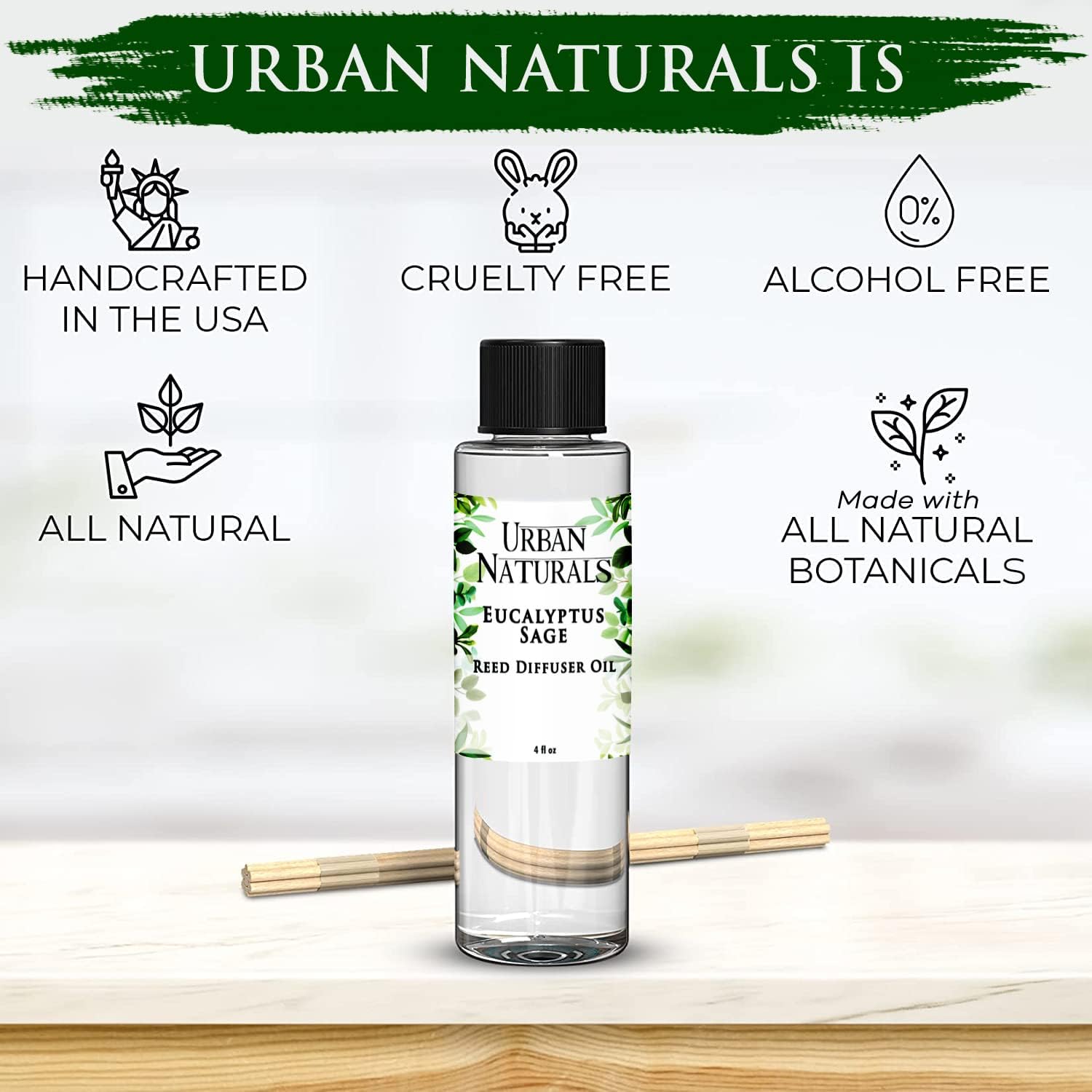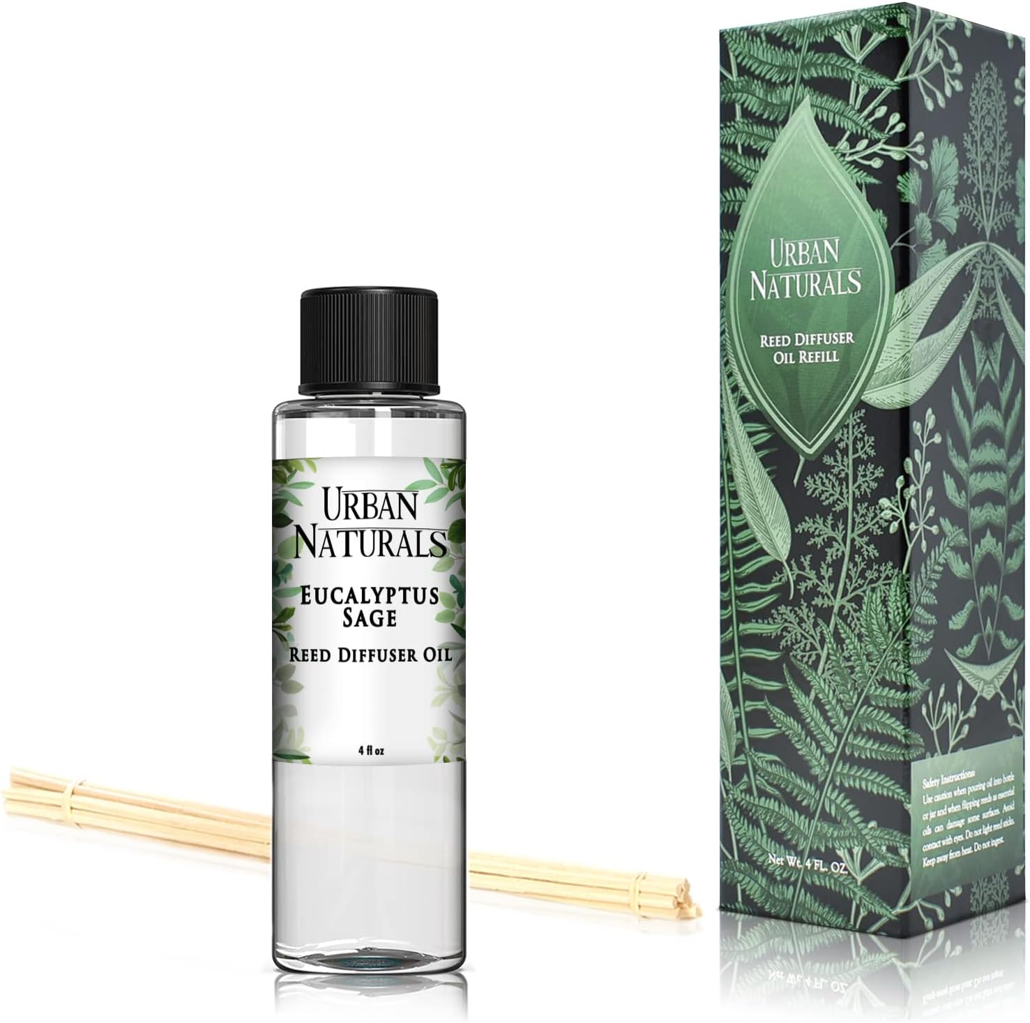 Urban Naturals Eucalyptus & Sage Oil Reed Diffuser Refill | Eucalyptus, Sage, Mint, Lime and Cedarwood| Includes a Free Set of Reed Sticks! 4 oz