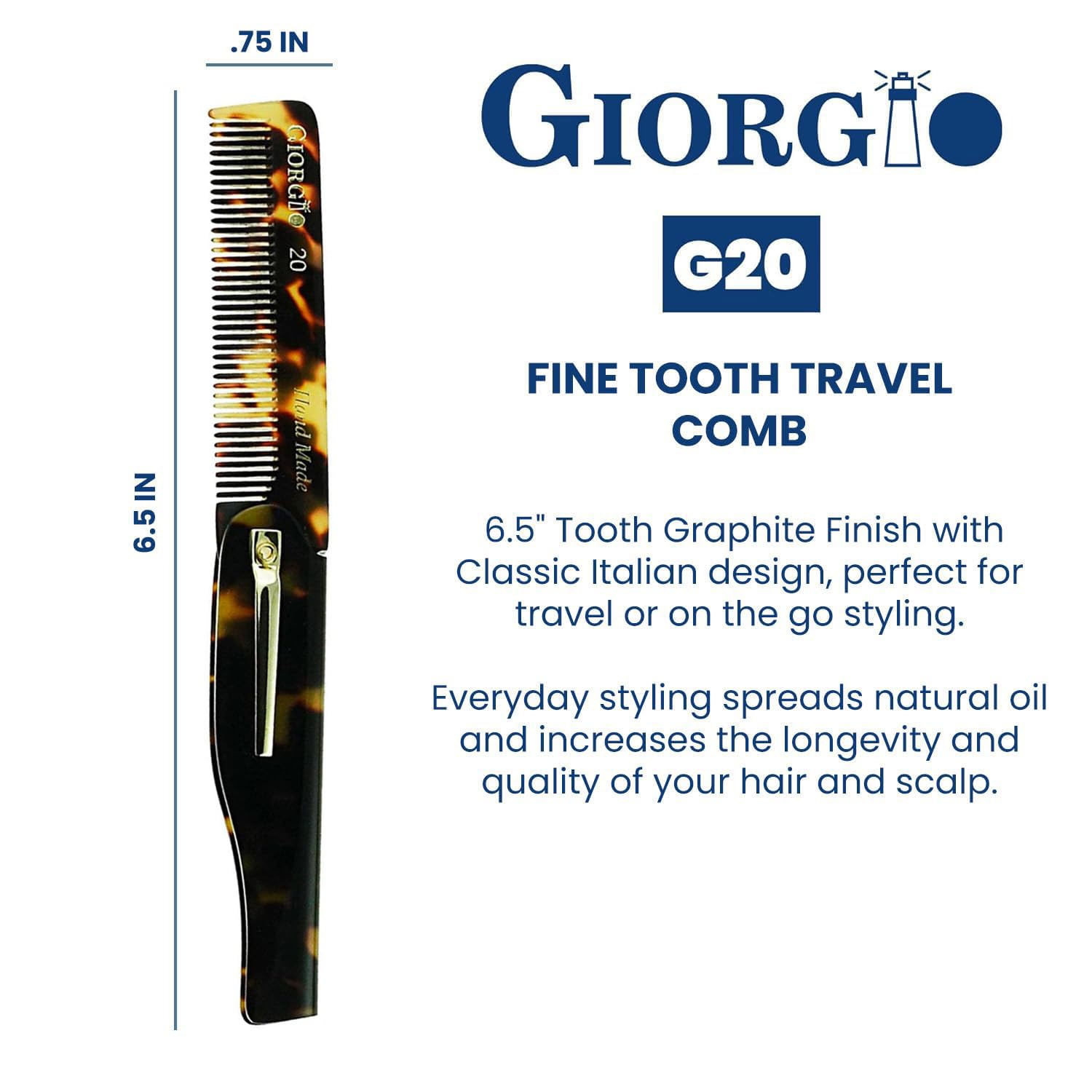 Giorgio G20 Folding Mustache and Beard Comb 6.5 Inch - Fine Tooth Travel Comb for Everyday Styling and Hair Care - Handcrafted Sawcut and Hand Polished