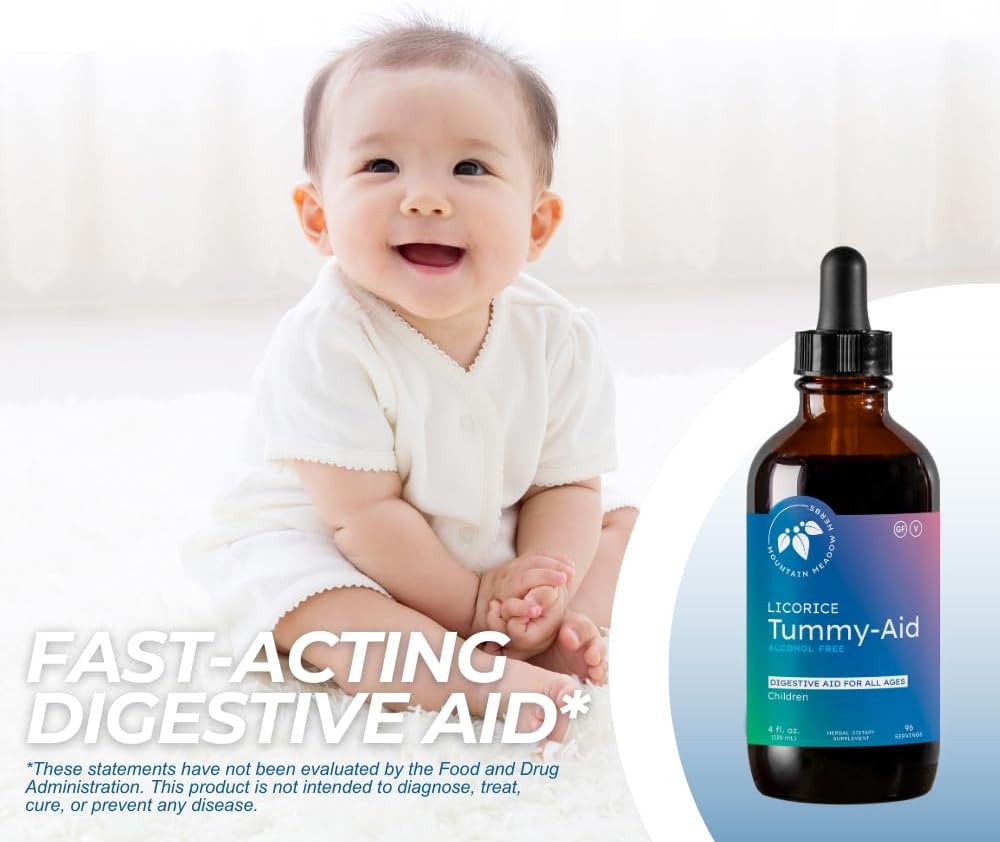 Mountain Meadow Herbs Licorice Tummy-Aid for Babies & Kids – Gas Relief Drops for Colic, Upset Stomach, Reflux & Bloating – Natural, Alcohol-Free Liquid Formula – 4 oz
