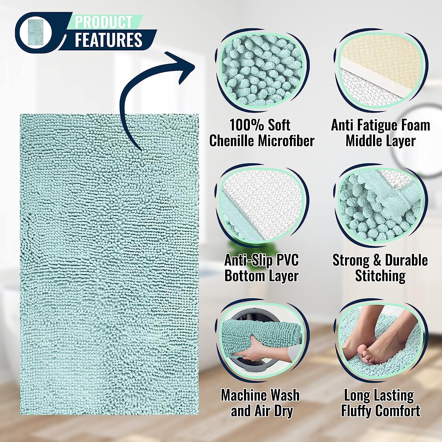 Chenille Bath Mats, Plush Absorbent Bath Mats Quick Dry, Soft & Machine Washable, Non Slip Carpet For Bathroom, Thick Bathroom Rugs, Shower Restroom Rug Mat, Alfombras De Baño, Bathrugs Matts, 59"x21"