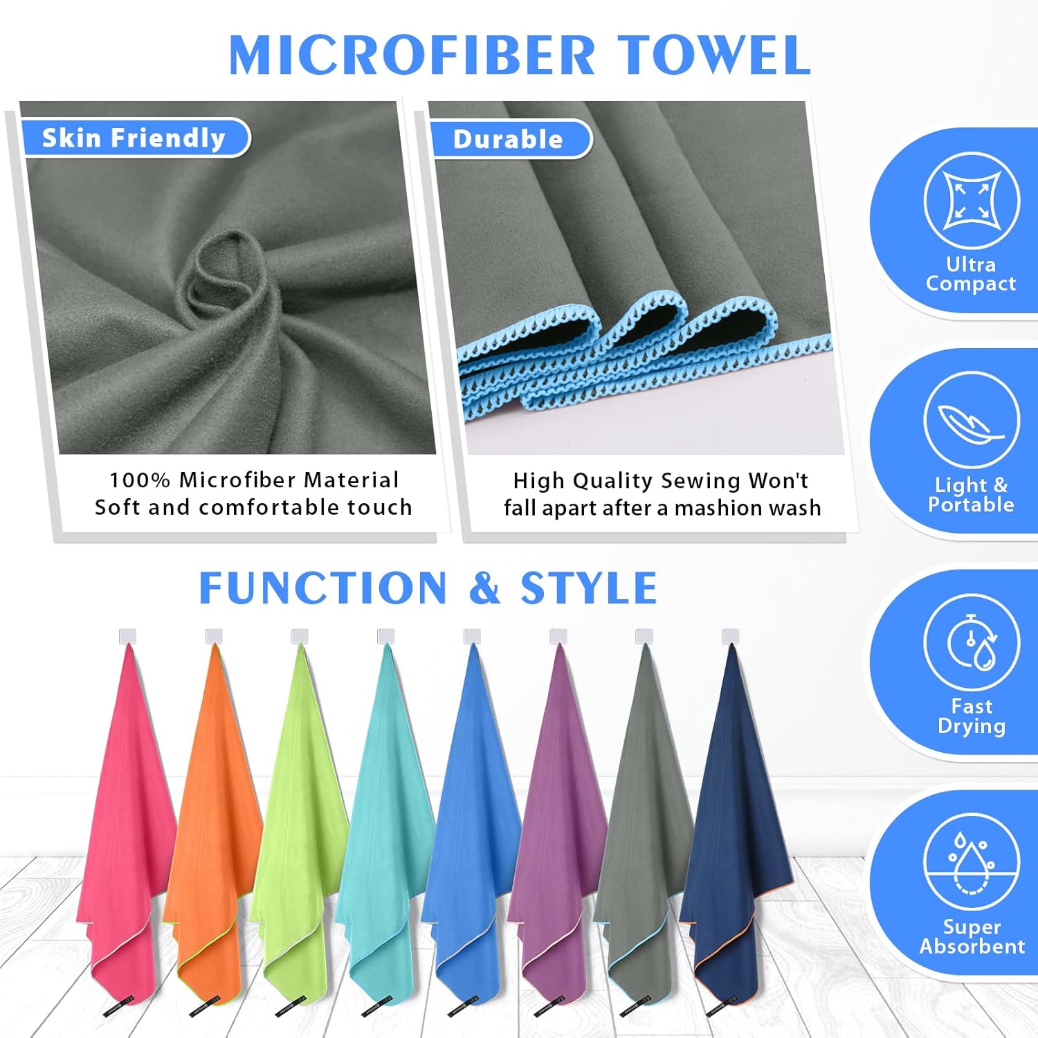 - MULTI-FUCNTIONAL QUICK DRY TOWEL & GIFT IDEA: Lightweight and compact microfiber towel for travel is super versatile for any situation. Such as backpacking, travel, camping, hiking, swimming, yoga, golf, gym, fitness, exercise. Perfect for covers your sun lounger, deck chair or camping undera beach umbrella&sun shelter. The travel towel also looks really fashionable and sporty, which makes it a great gift idea for your family and friends. Of course, if you have any problem, please contact us.