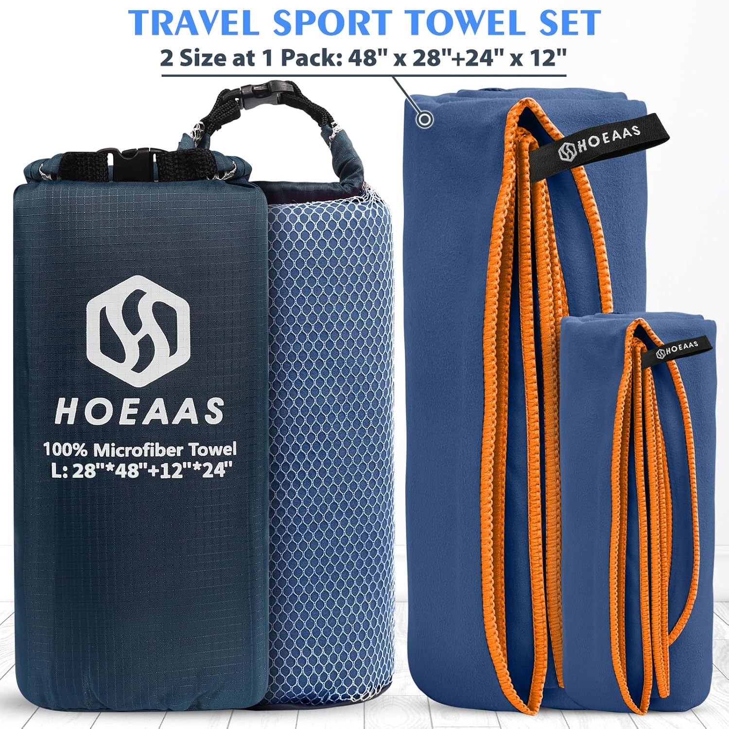 HOEAAS 2 Pack Microfiber Camping Towels, Quick Dry Towel, Super Absorbent Ultra Compact Travel Towel Soft Lightweight Sports Towel for Sweat Fast Drying Towels for Pool,Gym,Hiking,Backpacking,Fitness
