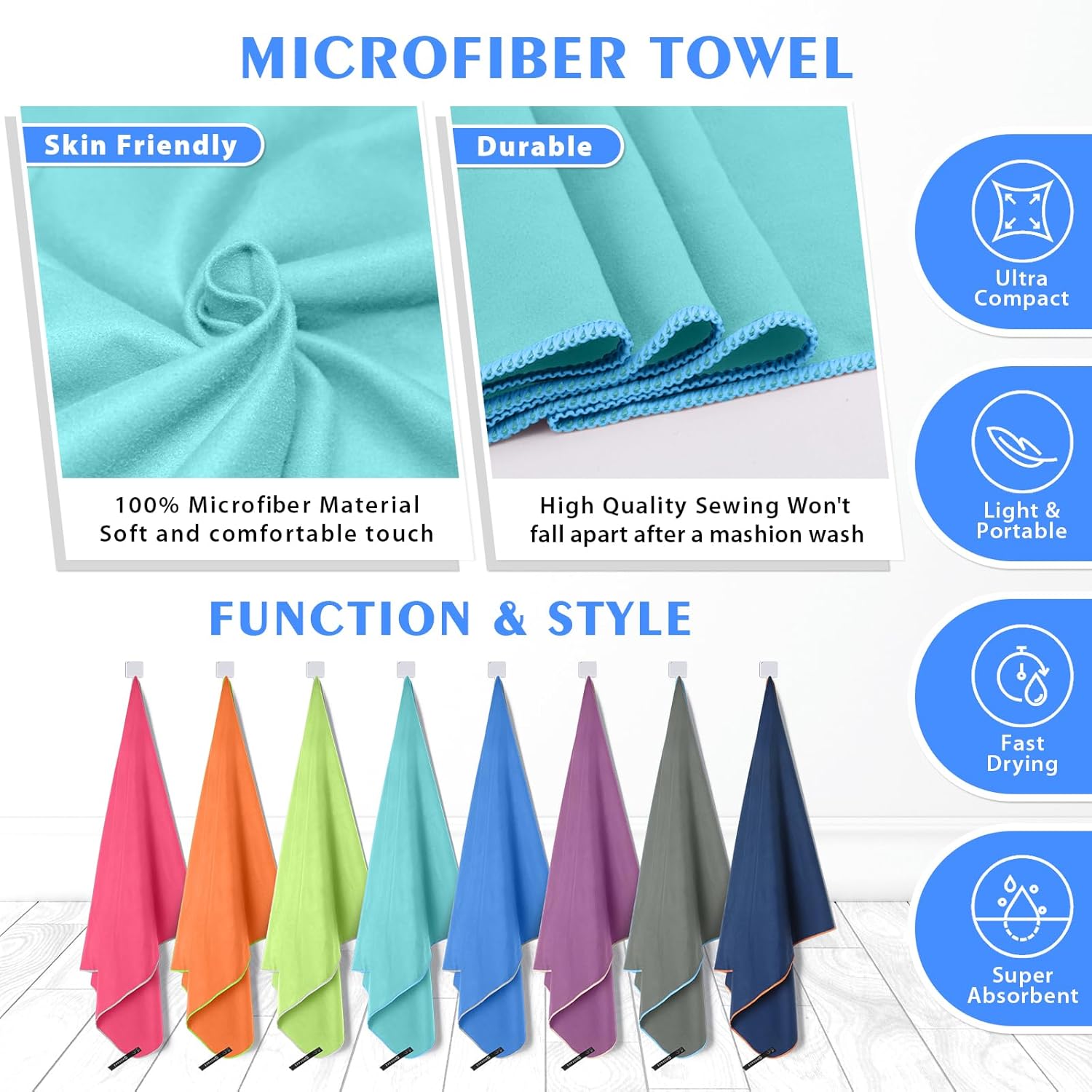 - MULTI-FUCNTIONAL QUICK DRY TOWEL & GIFT IDEA: Lightweight and compact microfiber towel for travel is super versatile for any situation. Such as backpacking, travel, camping, hiking, swimming, yoga, golf, gym, fitness, exercise. Perfect for covers your sun lounger, deck chair or camping undera beach umbrella&sun shelter. The travel towel also looks really fashionable and sporty, which makes it a great gift idea for your family and friends. Of course, if you have any problem, please contact us.
