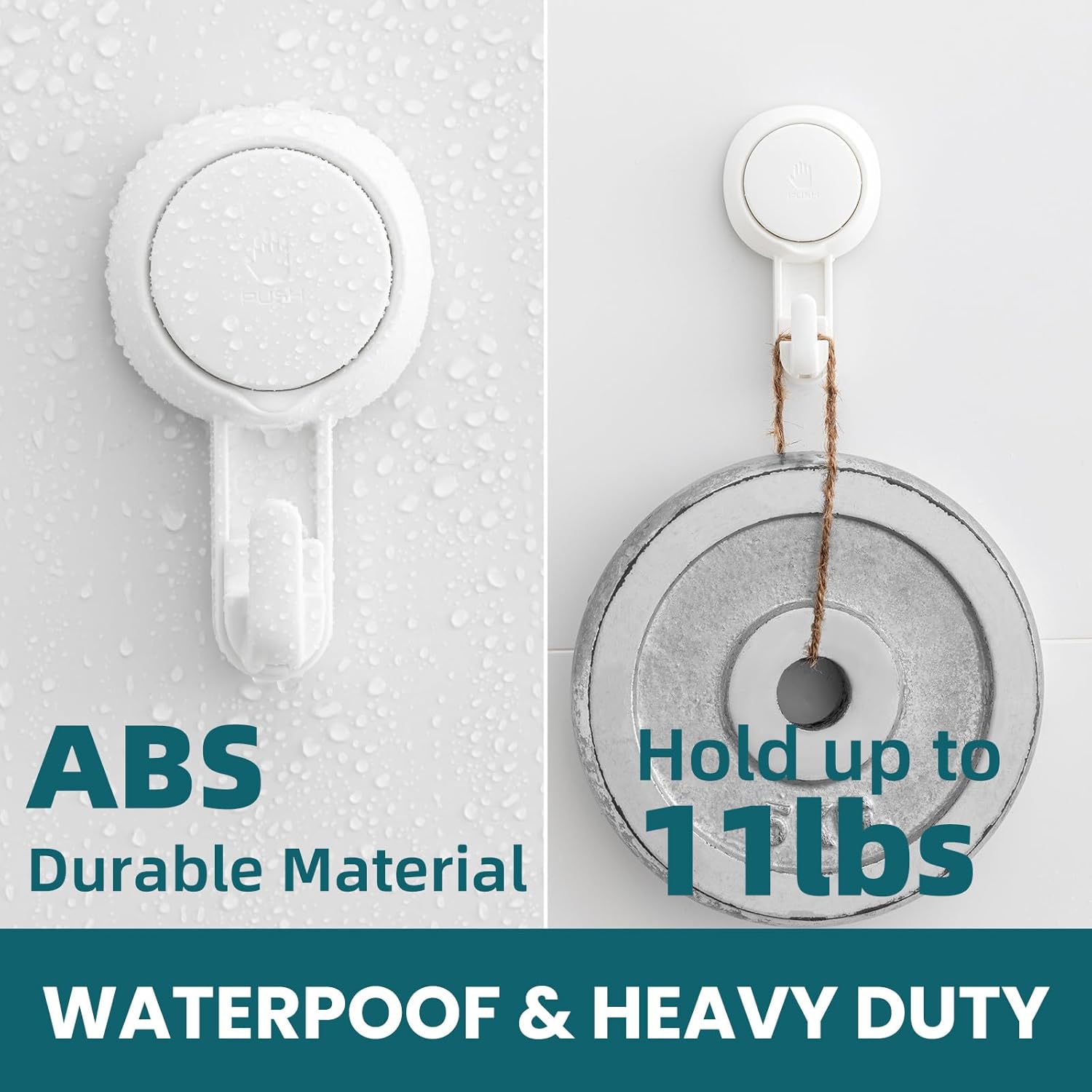 - Powerful suction cup: Inspired by the tentacles of octopus, the shower holder suction cup applied the new bionic technology to ensure waterproof, oil-proof and anti-aging. The towel hook with thicken plastic suction can hold up to 11 lbs and stick sturdily for years, available to remove and reinstall it in a new surfaces
