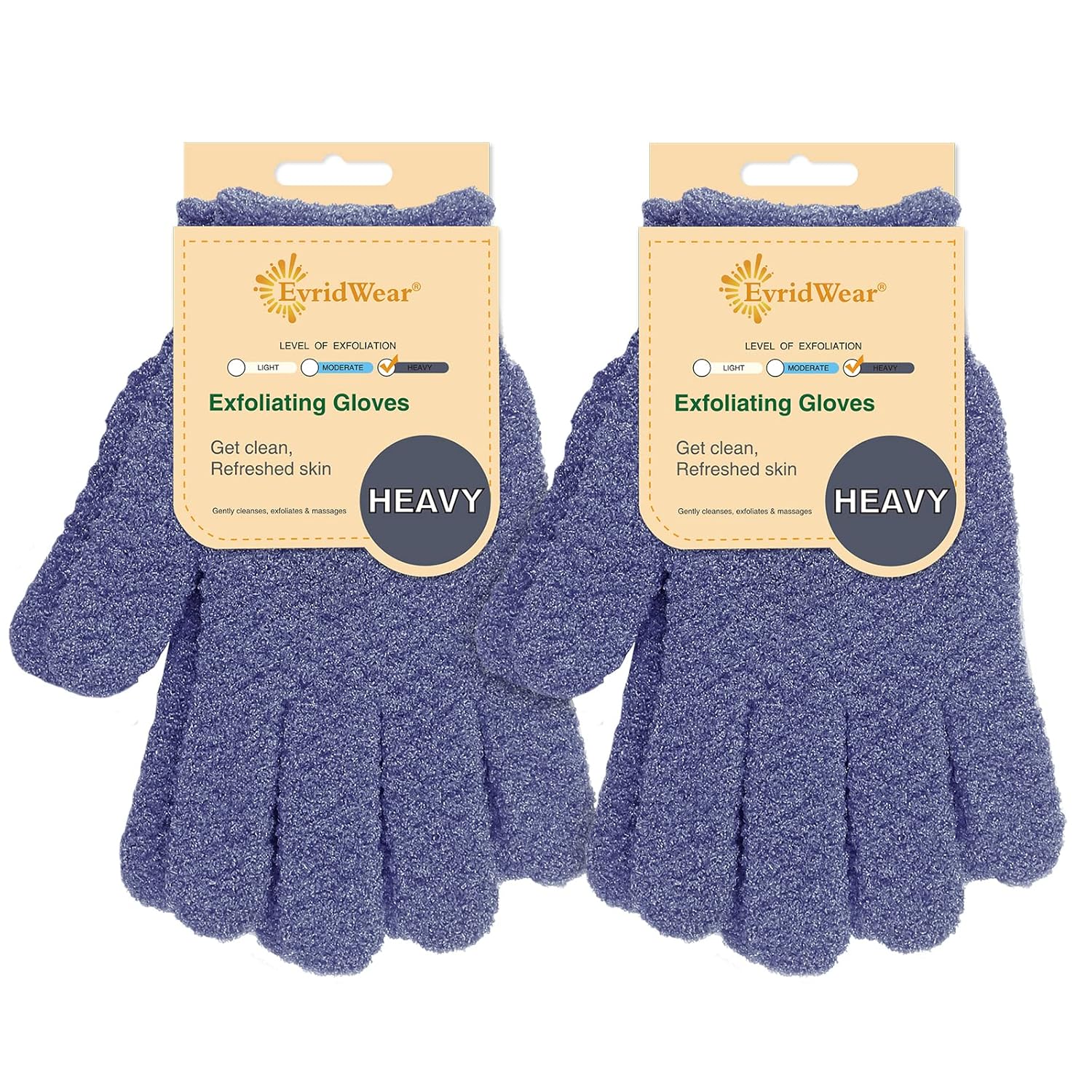 Evridwear Exfoliating Dual Texture Bath Gloves for Shower, Spa, Massage and Body Scrubs, Dead Skin Cell Remover, Gloves with Hanging Loop (2 Pairs Heavy)