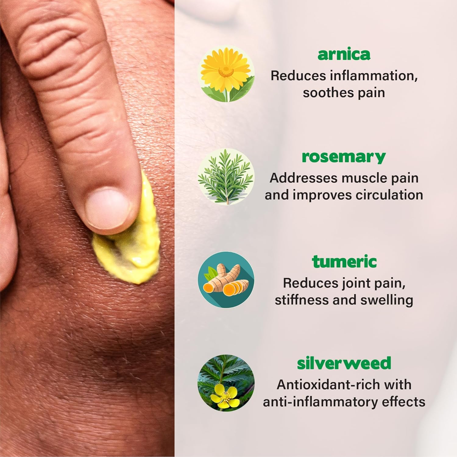 - Easy Application, No Grease: This fast-absorbing arnica-infused cream leaves no greasy residue. With a light, natural scent, it offers a clean, refreshing feel. Use it on joints and muscles for soothing support and relaxation after a workout or a long day. Massage it into clean skin for best results. Absorbs most effectively after a warm shower when pores are open, allowing the herbal blend to nourish and support skin and muscles. Enjoy smooth, free movement for an active, energized lifestyle.