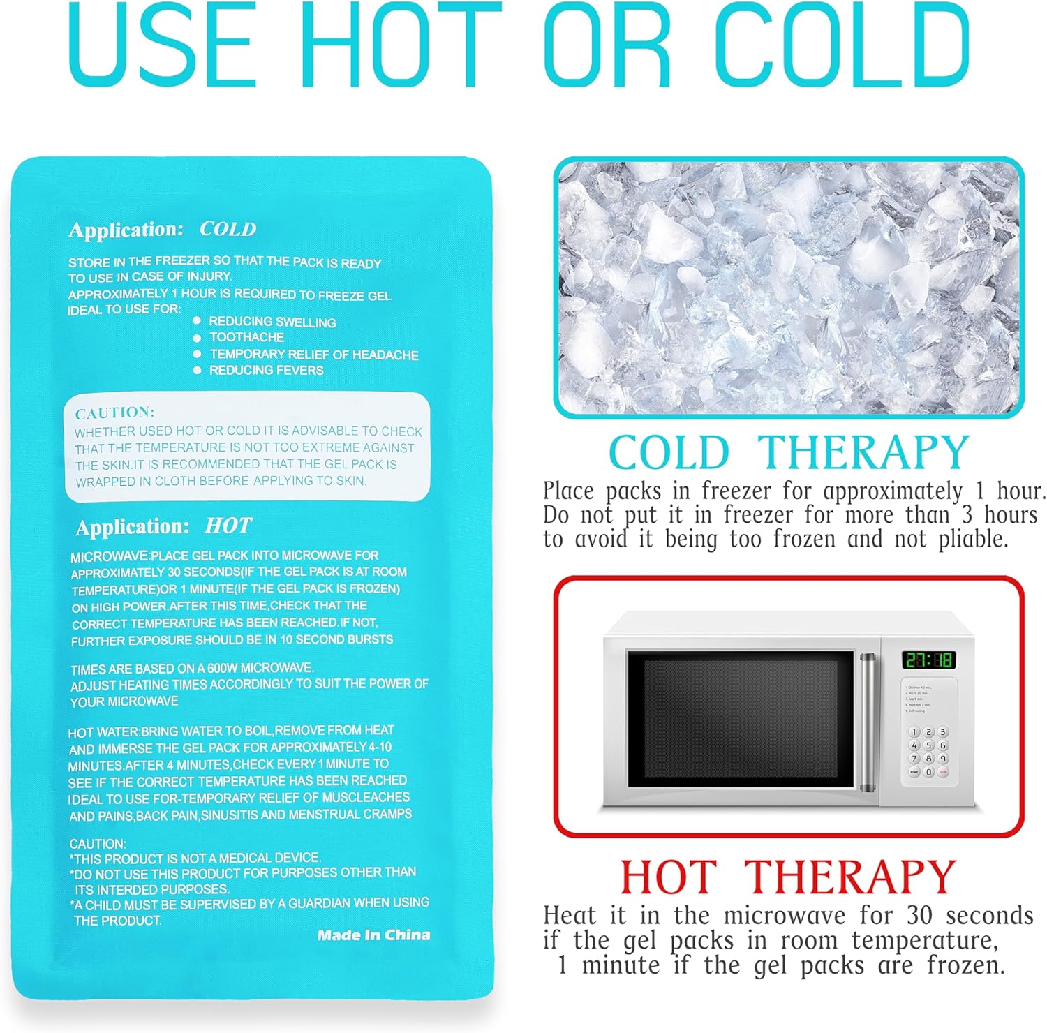 - EASY TO USE - Cool in freezer, heat in microwave or hot water, holds heat for ages and freezes fast and stays really cold for ages too (Follow instructions on pack)