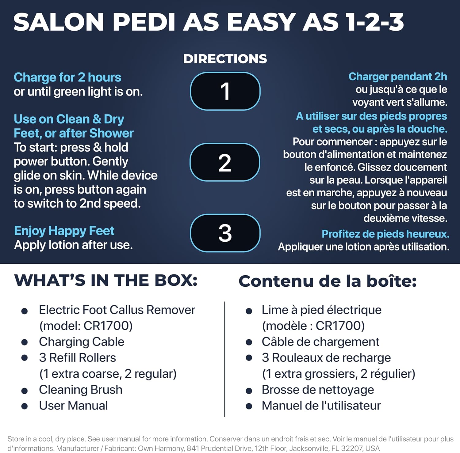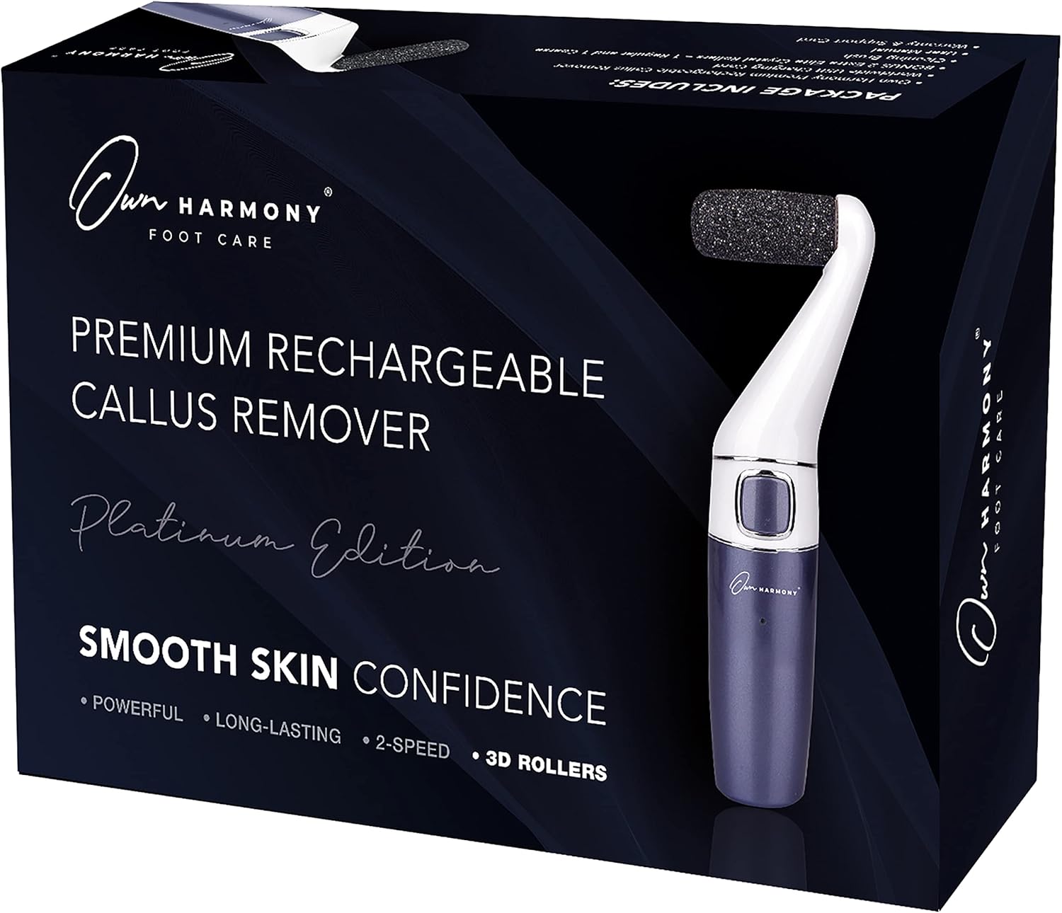 Electric Foot Callus Remover: Own Harmony Professional Feet Care Pedicure Tools, Rechargeable Feet Scrubber Dead Skin, Electronic Foot File Pedi Grinder, Best for Hard, Dry, Cracked Heels (3 Rollers)