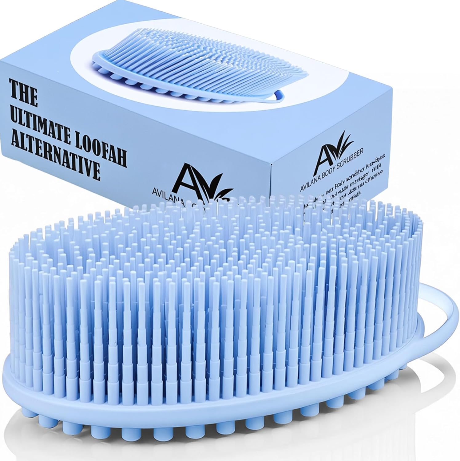 Avilana Silicone Body Scrubber – Gentle Shower Brush & Loofah Alternative- Food Grade & Lab Tested – Fast-Drying, Hygienic, BPA-Free Silicone Body Gentle Exfoliator (Blue, Massage)