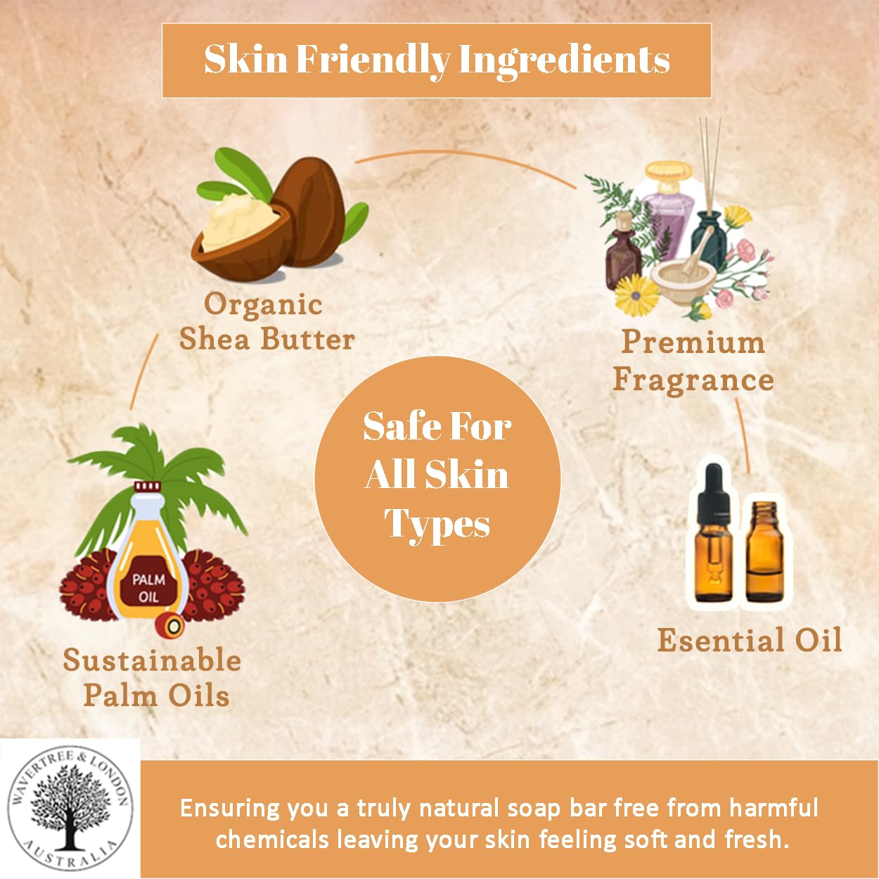 - 📋 Ingredients: Sustainable Palm oil, Palm Kernel Oil, Aqua (water), Certified Organic Shea Butter, Vegetable Glycerin, Essential Oils and/or Fragrance, Sodium Gluconate (natural sugar-based preservative), Sodium Chloride, Titanium Dioxide (food grade)