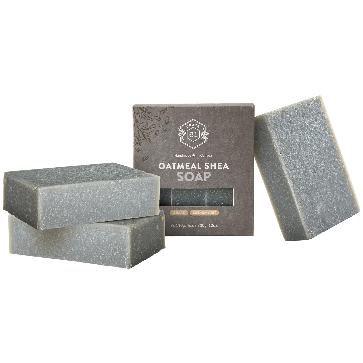 Crate 61 Organics, Handmade in Canada, Plant Based Cold Process Natural Bar Soap For Face & Body, w/Premium Essential Oils, For Men & Women 3 Pack (Oatmeal Shea (Unscented))