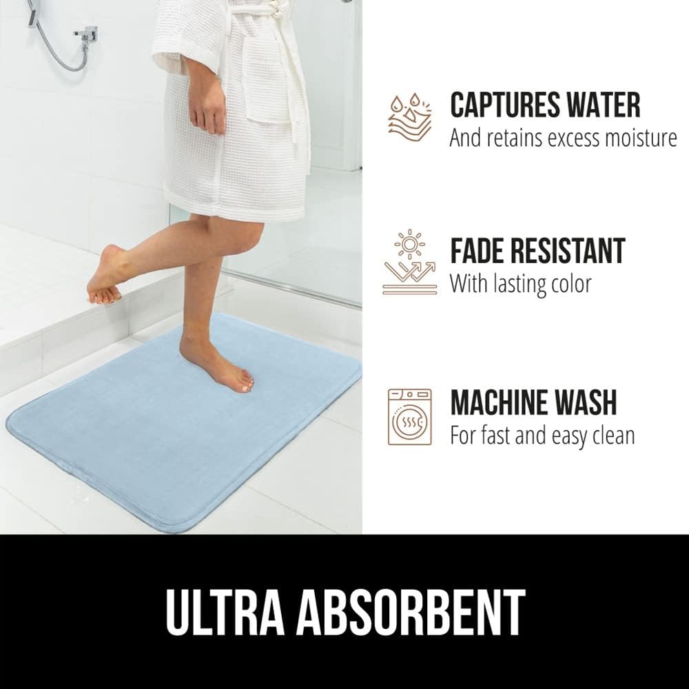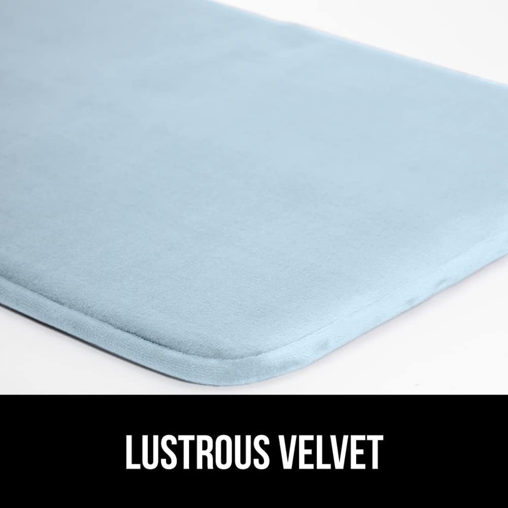 GORILLA GRIP Memory Foam Bath Rugs, Soft Absorbent Velvet Bathroom Mats, Durable Dots on Underside, Machine Washable Bathmat, Carpet Rug Room Decor for Shower Floor, 24x17 Mat, Light Blue