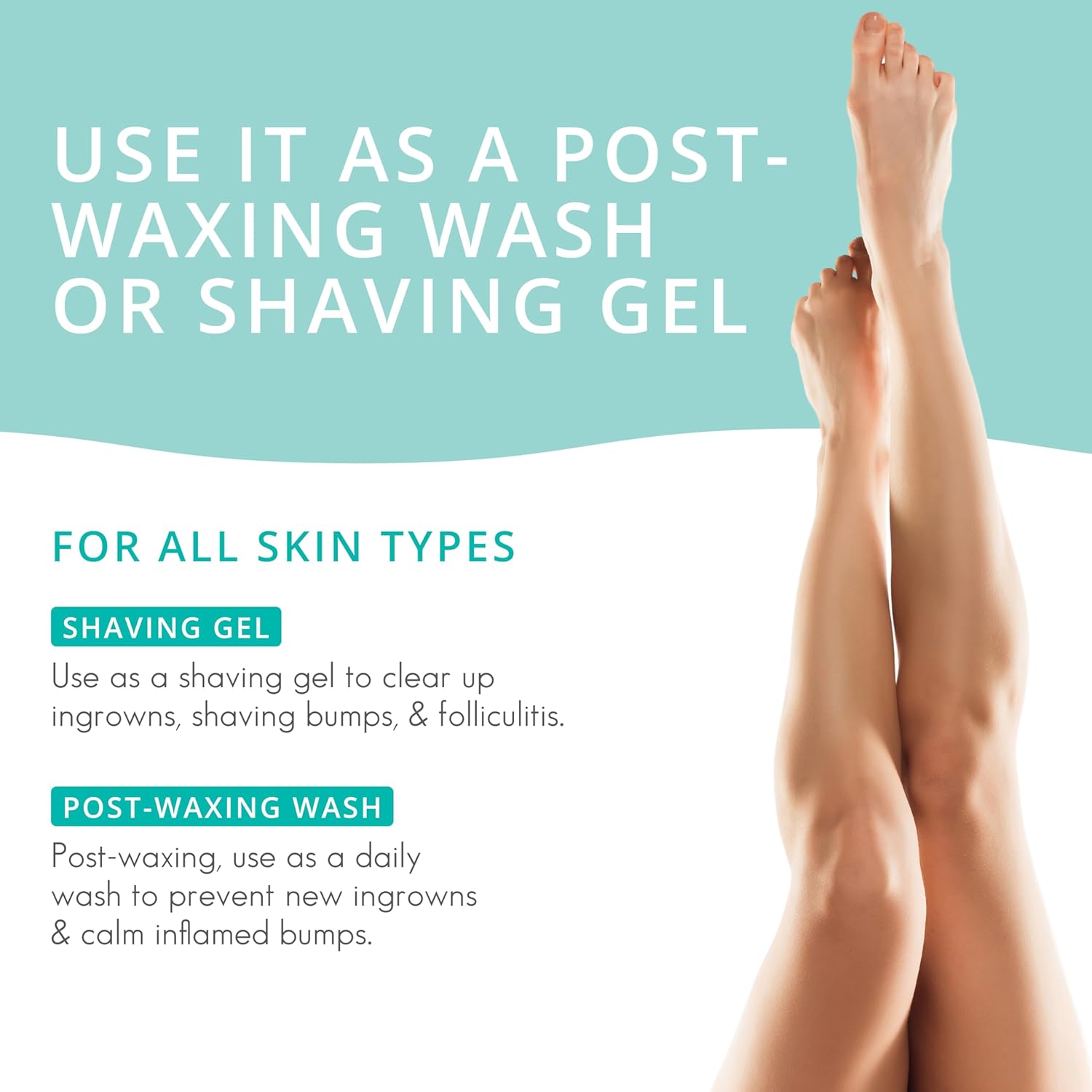 - INGROWN HAIR & SHAVING BUMPS: Can be used as a shaving gel for those prone to ingrowns or shaving bumps. Or, post-waxing, use to calm the appearance of raised bumps and ingrowns in areas like the jawline or bikini area.