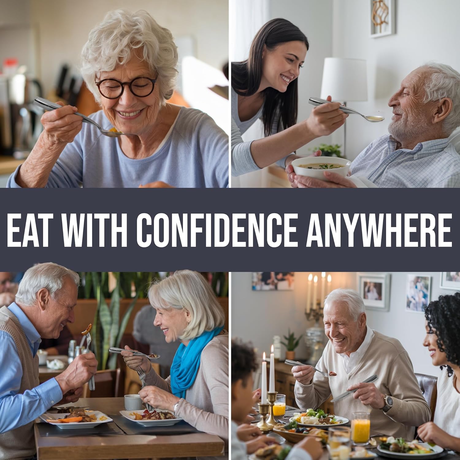 - Complete 4 Piece Set for Every Meal - Each set includes a weighted fork, knife, spoon, and soup spoon—covering breakfast, lunch, and dinner. Designed as utensils for elderly and those with weak hand grips, this versatile set supports daily dining needs whether at home, in assisted living, or in rehabilitation centers.