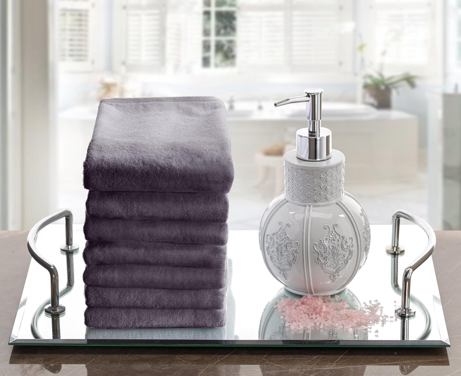 - Set Includes Four Premium Cotton Towels in Grey, Each Measuring 11 By 18 Inches.
