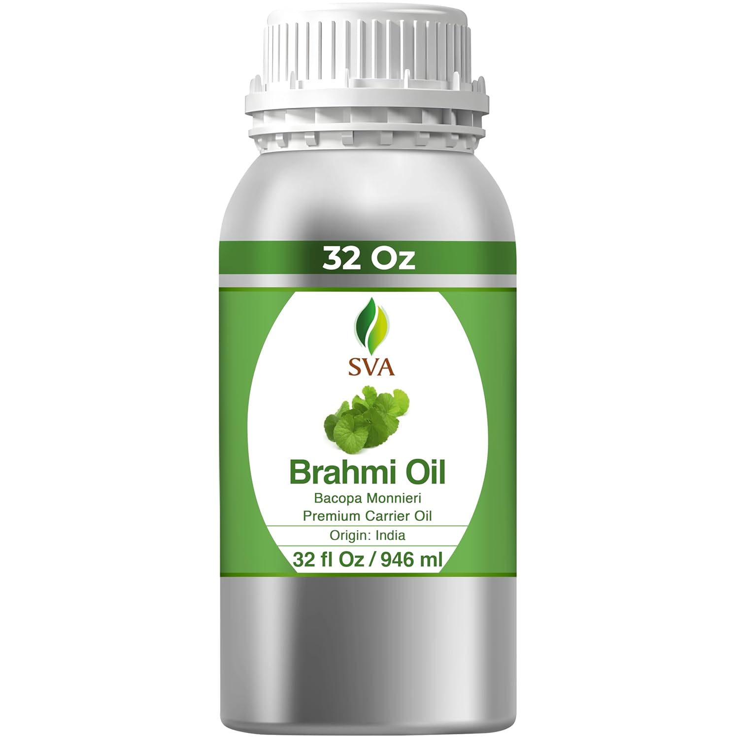 SVA Brahmi Oil - 32 Fl Oz – 100% Natural Cold Pressed Brahmi Oil - for Face, Skin Care, Hair Care, Scalp Massage & Body Massage – Carrier Oil