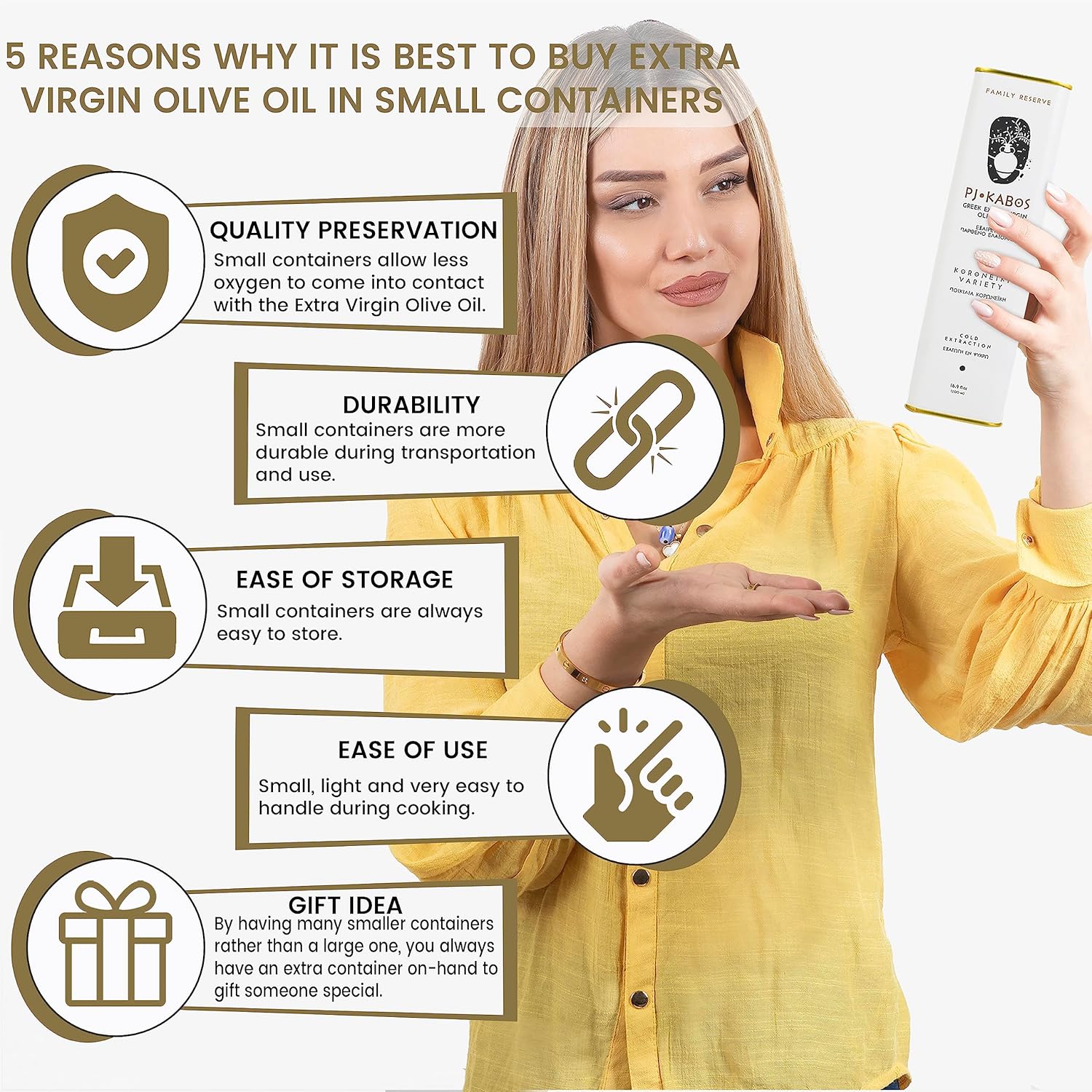 - 2024/25 Fresh Harvest – Ultra-premium, fresh, clean taste, hand harvested in October/November of 2024 (the olive harvest lasts from September to February of every year, and is named after the new year). Comes in an elegant 16.9 fl oz tin (3-Pack) which is easy to store, easy to handle (you don’t need a dispenser bottle or sprayer as it has a great pouring spout). Great business or personal gift idea. Best Before June 2026.