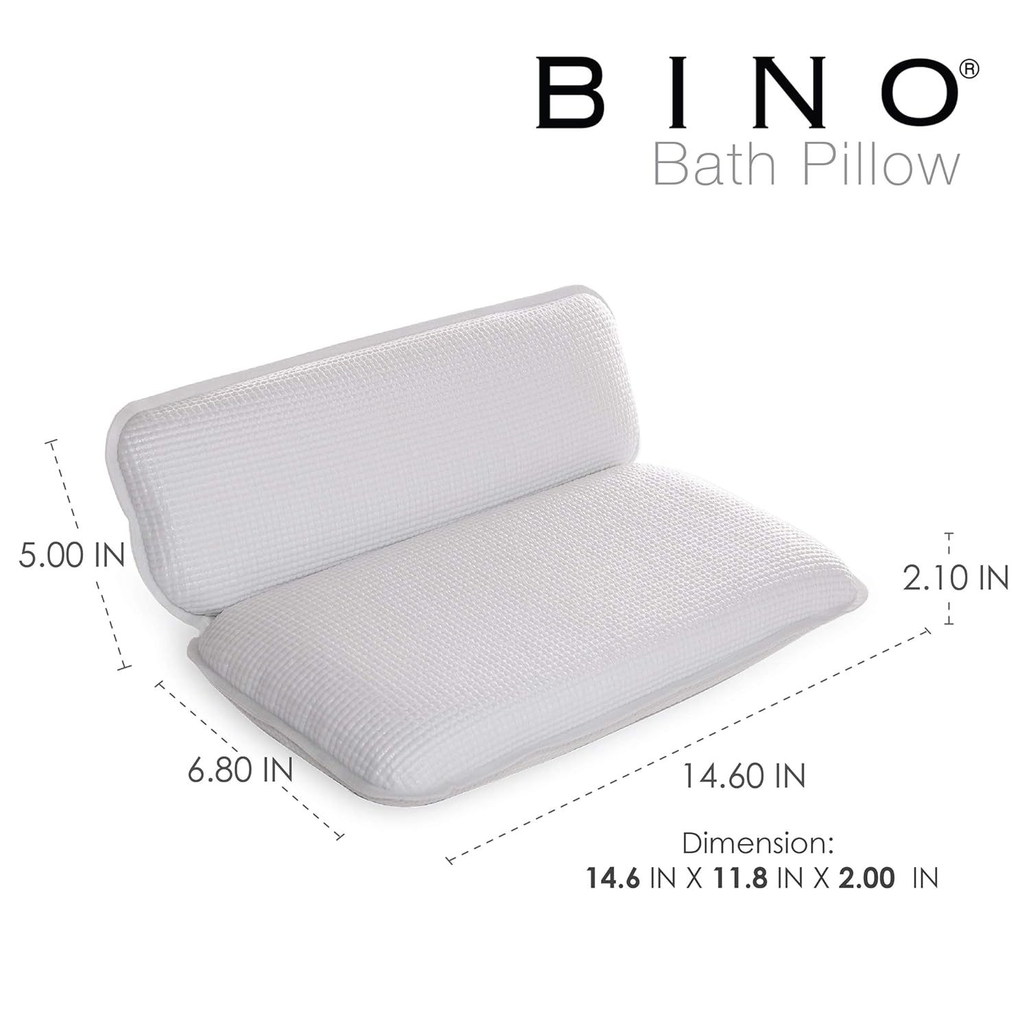 BINO Non-Slip Cushioned Bath Pillow with Suction Cups, White - Spa Pillow Bath Pillows for Tub Neck and Back Support Bathtub Pillows for Tub Accessories Set Rest