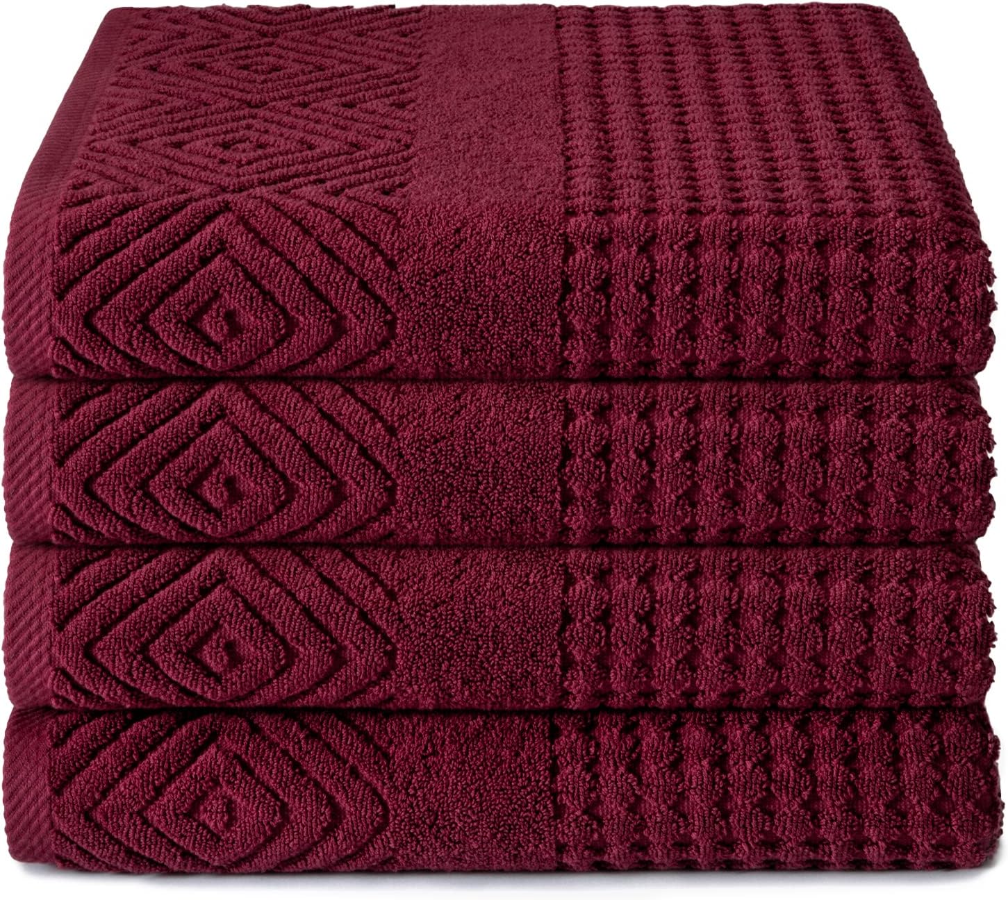 Texere 100% Organic Cotton Jacquard Towel Sets (Diamond, Merlot, 4 Bath Towels)