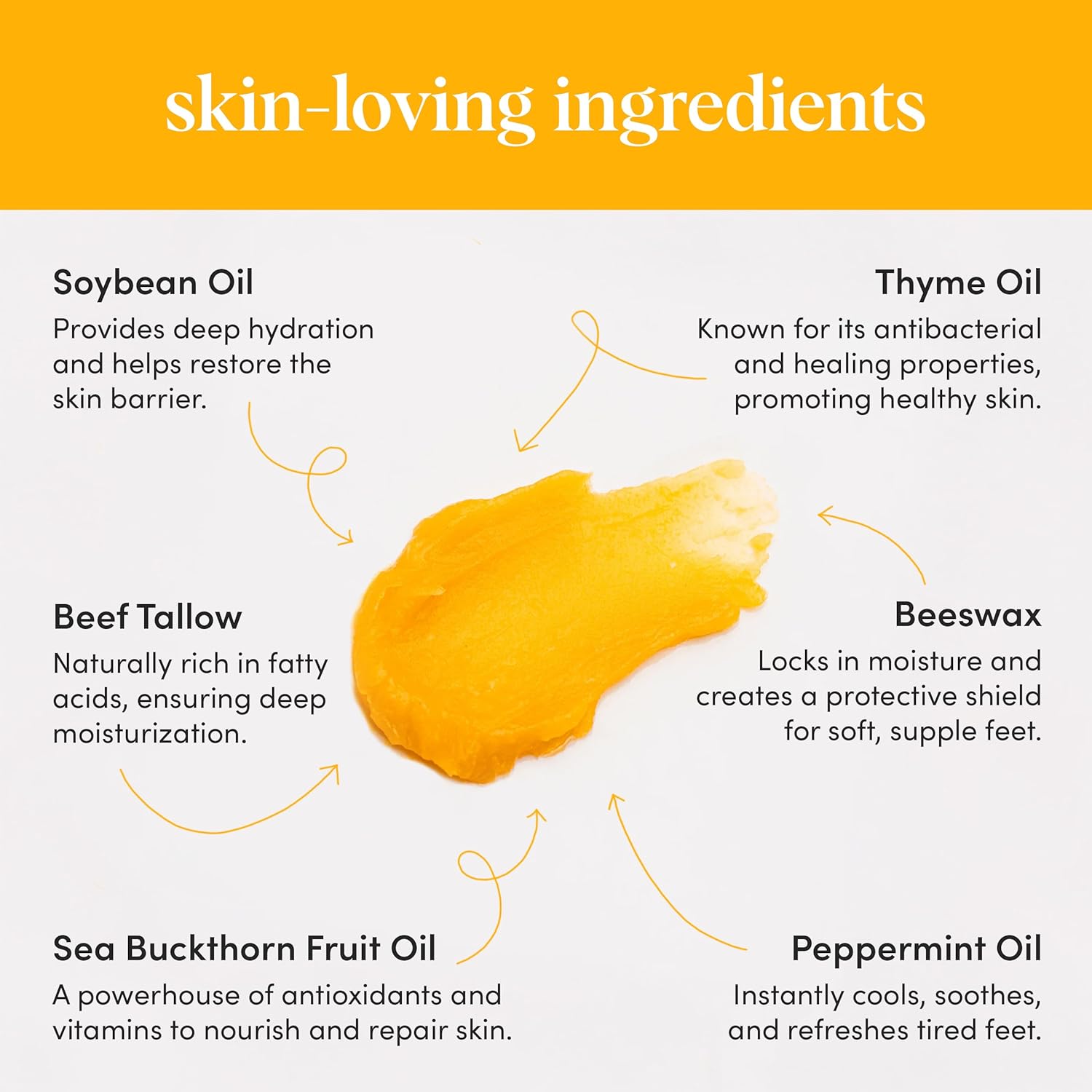 Natural Foot Salve for Dry Cracked Feet – 100% Organic Formula with Beef Tallow, Sea Buckthorn, Thyme & Peppermint Oil – Heel Balm Foot Cream for Rough Skin & Callus Care – 1.06 oz