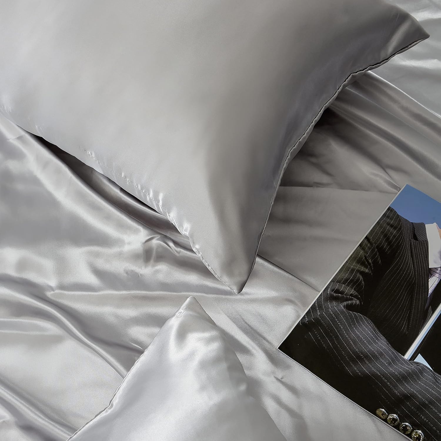 Juwenin Bedding,Luxury Satin Pillowcase with Zipper (Silky Satin Pillow Case for Hair) Set of 2 (Dark Grey, King(20''x36'))