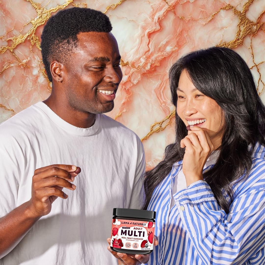 Llama Naturals Multivitamin for Women & Men, Vegan, Organic Gummies with Vitamin D, C & K, Adults Real Fruit Gummy Vitamins, Chewable Multivitamin Supplement, No Added Sugar Cane, Strawberry, 120 Ct