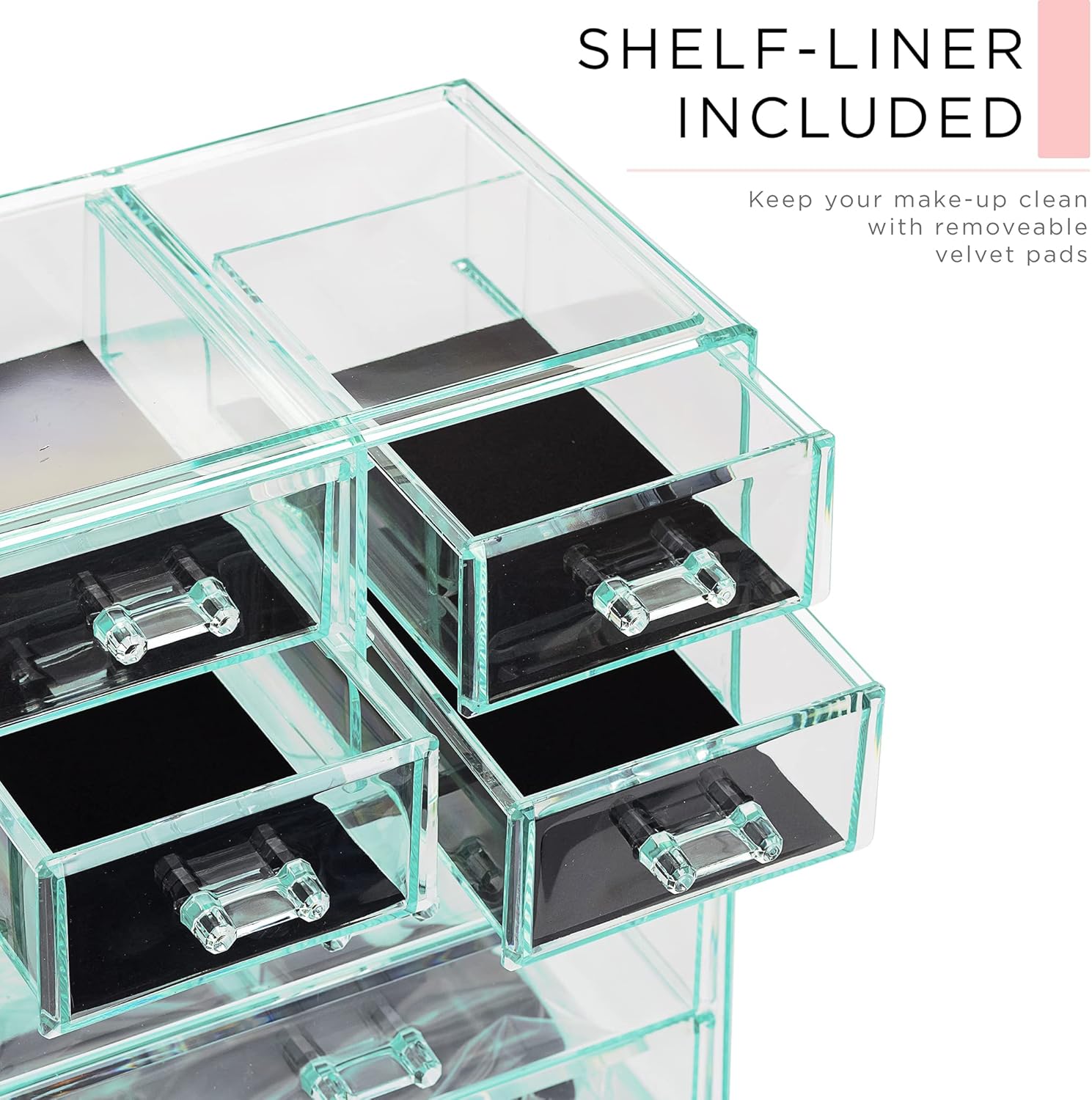 Sorbus Clear Cosmetic Makeup Organizer - Make Up & Jewelry Storage, Case & Display - Spacious Design - Great Holder for Dresser, Bathroom, Vanity & Countertop (3 Large, 4 Small Drawers) [Teal Thrill]