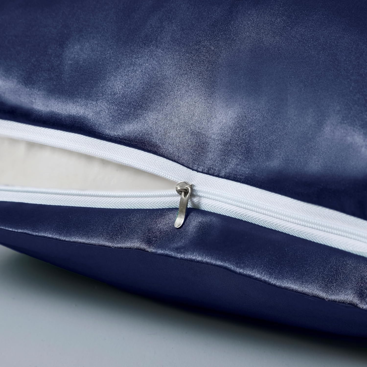 Juwenin Bedding,Luxury Satin Pillowcase with Zipper (Silky Satin Pillow Case for Hair) Set of 2 (Navyblue, Queen(20''x29''))
