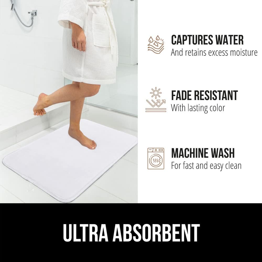 GORILLA GRIP Thick Memory Foam Bath Rugs, Soft Absorbent Velvet Bathroom Mats, Durable Dots on Underside, Machine Washable Bathmat, Carpet Rug Room Decor for Shower Floor, 60x24 Mat, White
