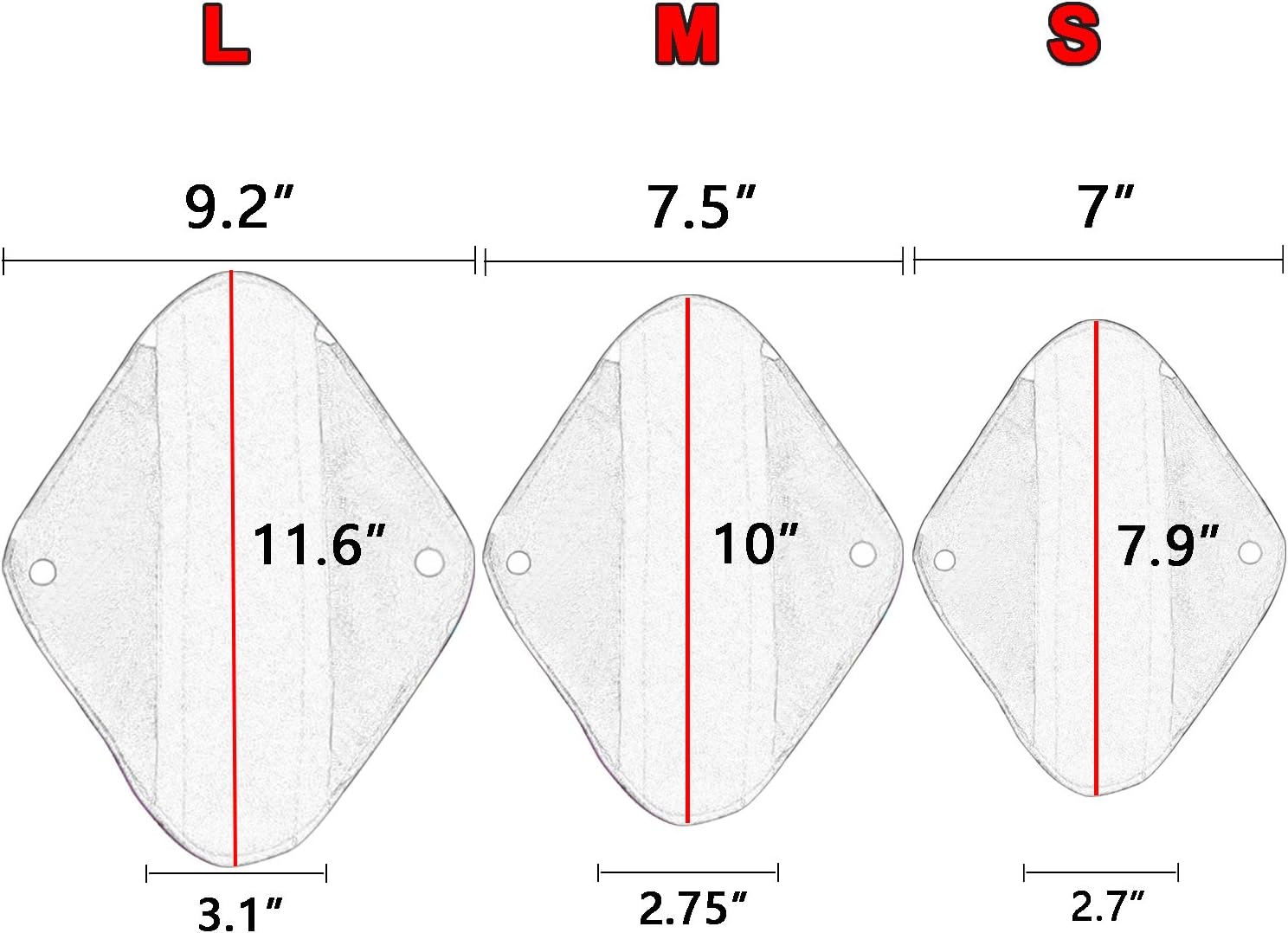 - PREMIUM QUALITY: Contains 3 sizes (3pcs×7.9"Dandelion +4pcs×10"Lotus Leaf+3pcs×11.6"Butterflies ) for different menstrual volumes. Made of 100% polyester+charcoal fiber, soft layer against your skin, 2-layer super-absorbent microfiber, waterproof PUL outer layer to prevent leaks and spills.