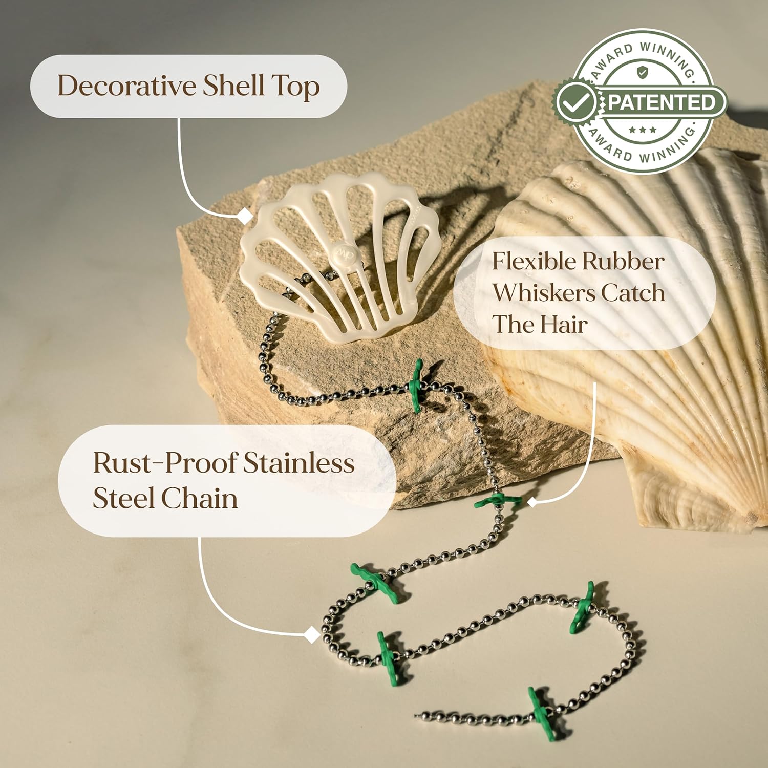 DrainWig Shower Drain Hair Catcher – Disposable White Ocean (2-Pack) – No-Touch Hair Removal for Flat Shower Drains – As Seen on Shark Tank