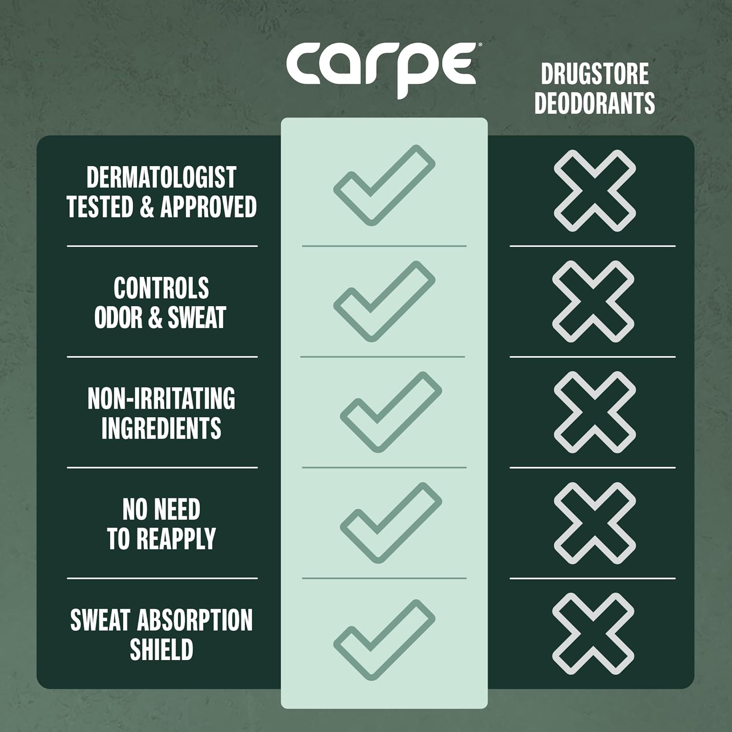 - DEVELOPED WITH DERMATOLOGISTS: Carpeâs scientifically developed sweat control formula has been independently tested for safety and proven to be a leading over-the-counter sweat solution. Our deodorant for extreme sweating is gentle on skin & provides the protection you can count on!