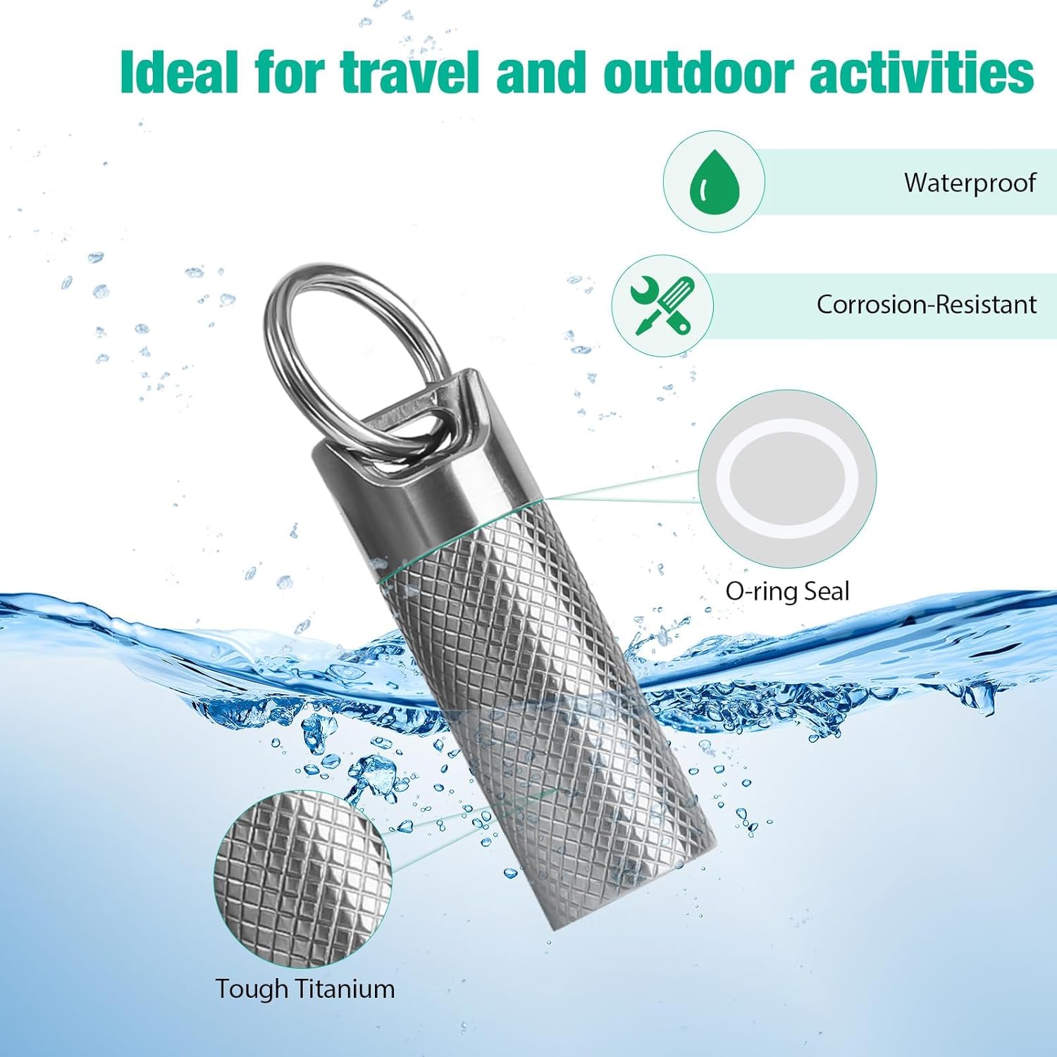 - 【Waterproof & Corrosion-Resistant】Made from titanium, this keychain pill holder resists corrosion, enduring seawater, acidic, and alkaline environments. Ideal for travel and outdoor activities.