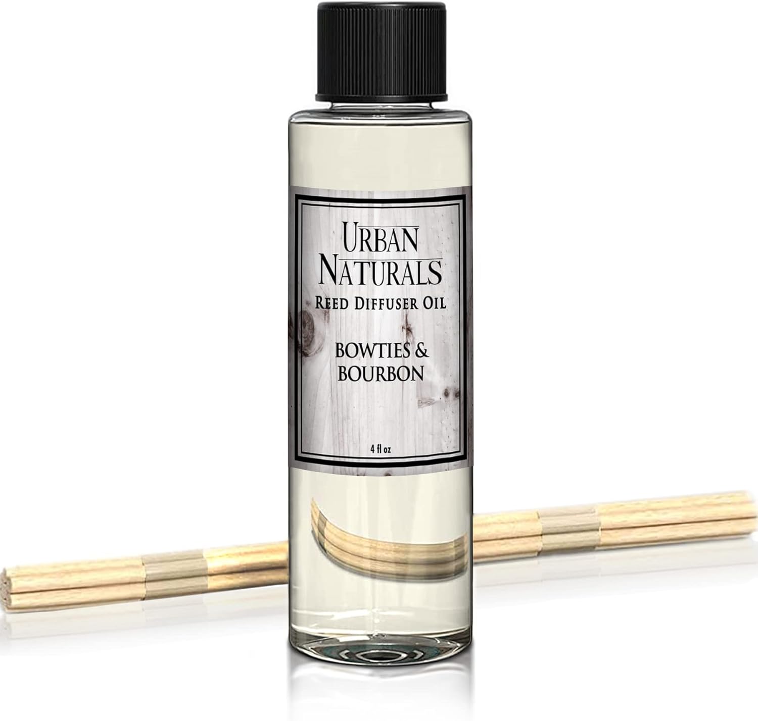 Urban Naturals Bowties & Bourbon Scented Oil Reed Diffuser Refill with Free Set of Reed Sticks. A Unisex Scent Blended with Dark Oak, Bergamot and Bourbon for a Fresh, Clean Smelling Home, 4 oz