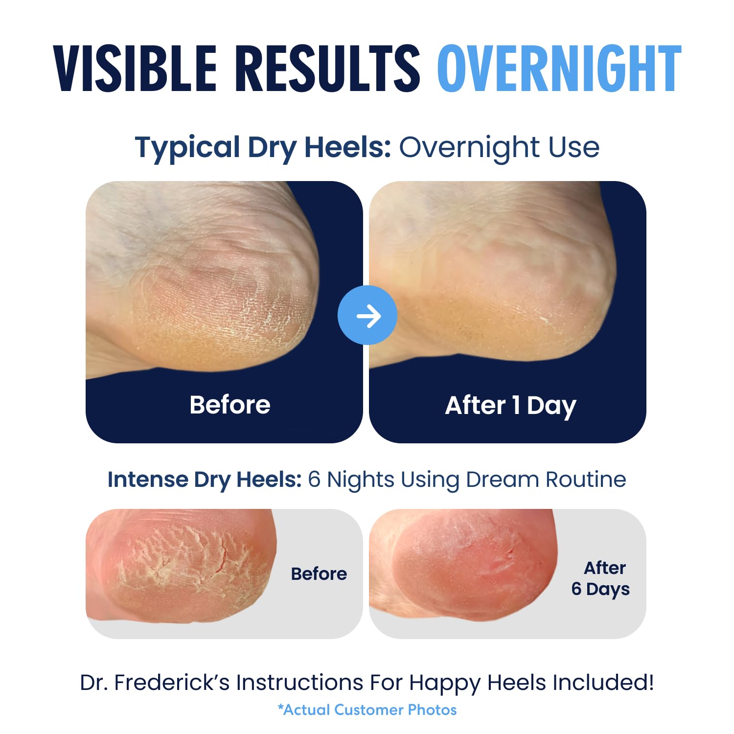- Fast Cracked Heel Repair: Dr. Frederick’s Original Moisturizing Heel Socks are expertly developed to offer a soothing experience, hydrating heels in as little as 7 days. Reduce irritation and encourage healthy skin with our comfy, breathable, toeless heel socks. Plus, with our crack-free guarantee, you can purchase with confidence, knowing you’re getting the best moisturizing gel heel socks for dry cracked feet.