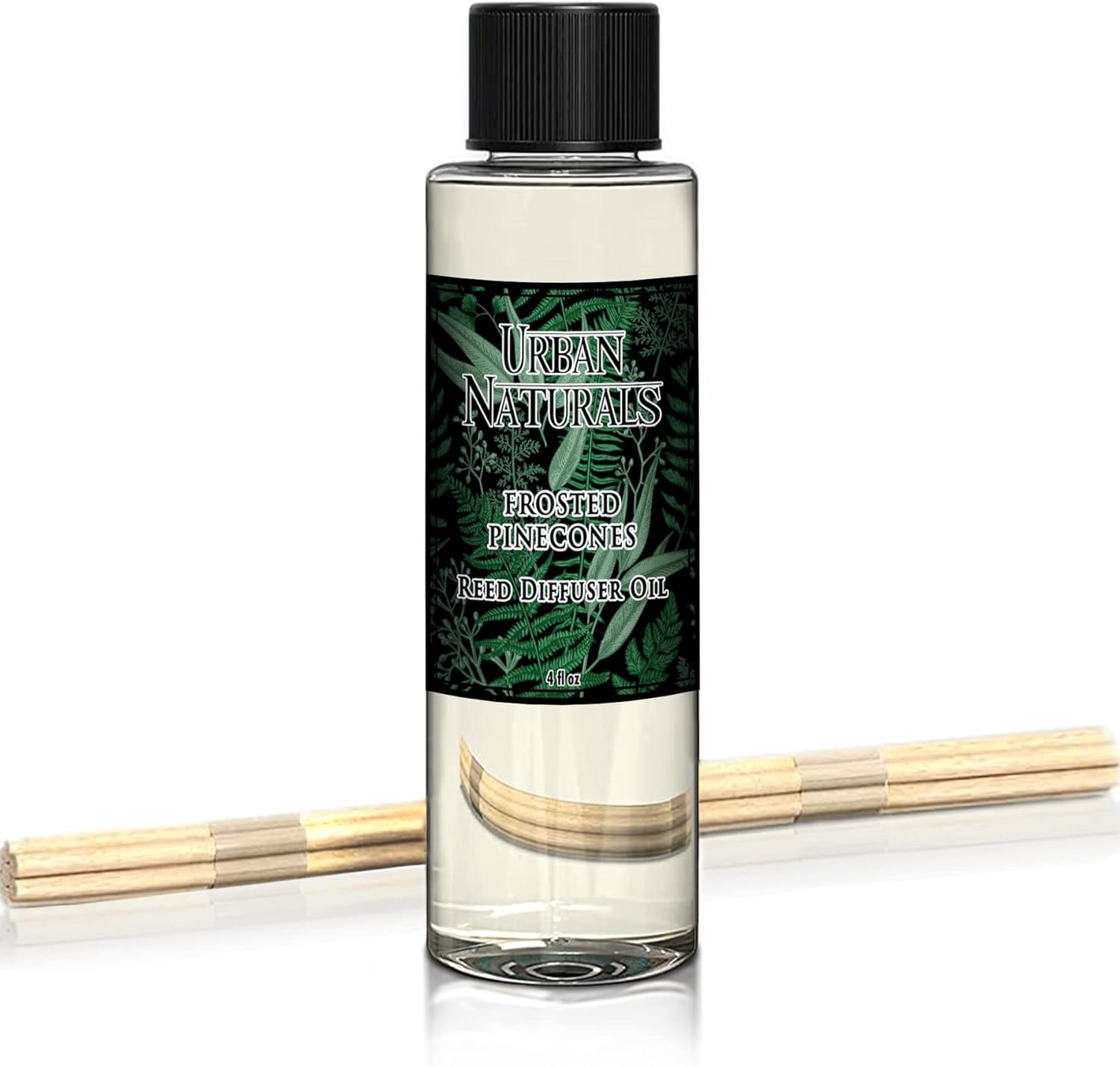 Urban Naturals Frosted Pinecones Holiday Oil Reed Diffuser Refill with Free Set of Reed Sticks – Pine, Cinnamon, Clove, Cedar Wood, Sandalwood and Vanilla Bean – Vegan, 4 oz, Made in The USA