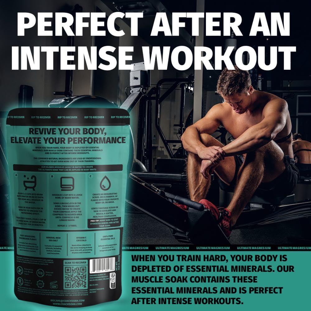 Coach Soak Recovery Bath Soak - Alternative to Epsom Salt Bath Soak - Fast-Absorbing Pure Magnesium Flakes with 21 Minerals, Bath Salts & Essential Oils - 48 oz, Cooling Peppermint