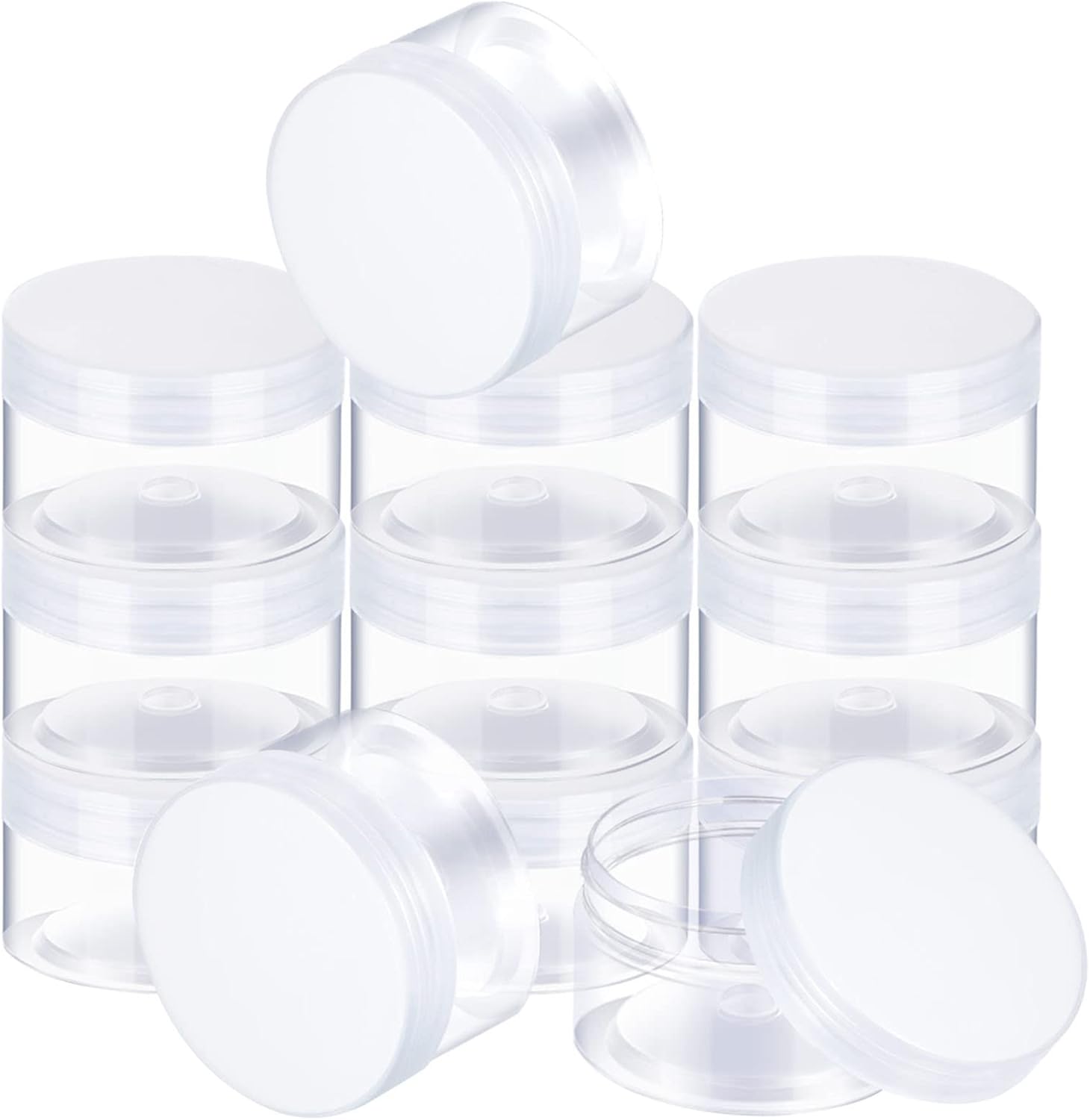 SATINIOR 12 Pack Plastic Container Jars with Lids Round Clear Travel Cosmetic Container Slime Jar for Toiletries, Lotion, Cream, Ointment, Makeup, Rhinestone, Sample, Kitchen Storage(2 oz,Clear)