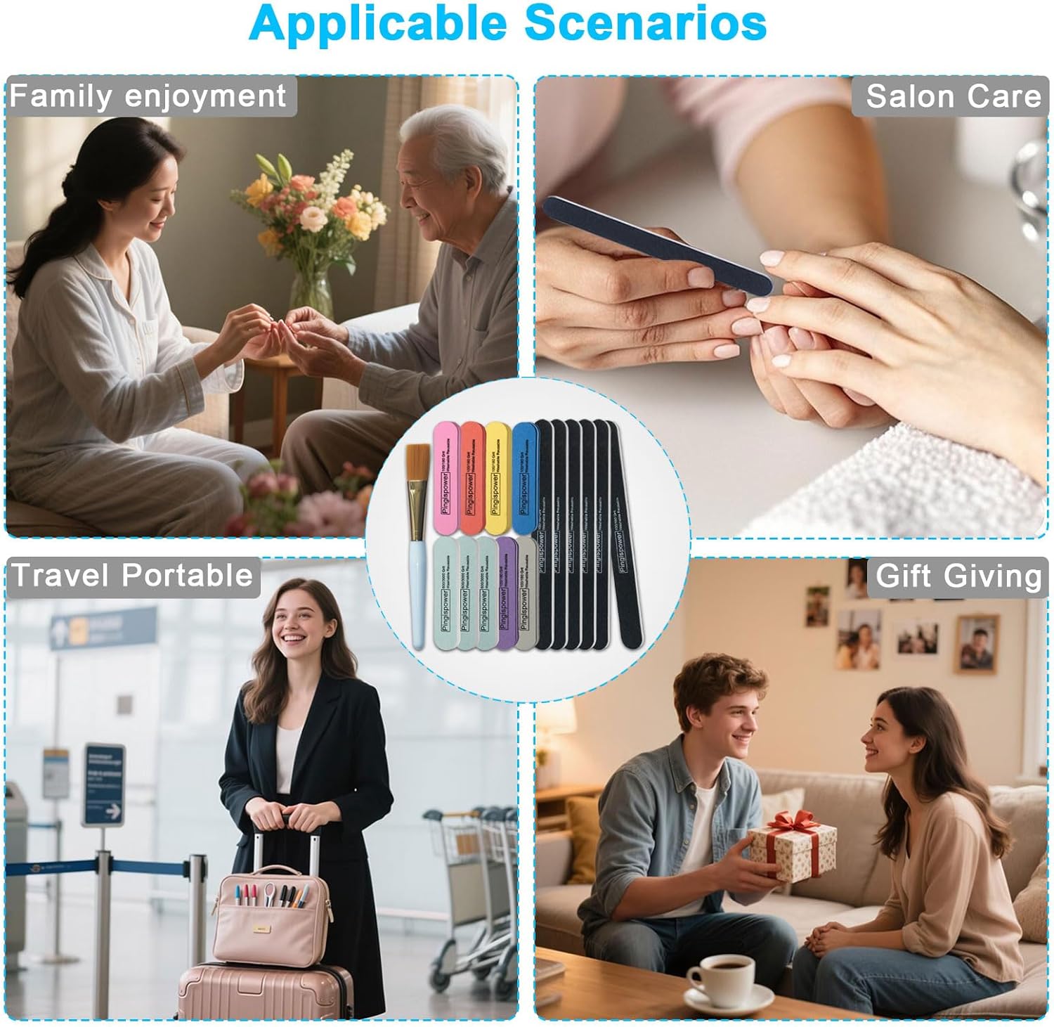 - 【What You Get】: 6Pcs nail files, 6PCS nail buffer blocks, 3PCS nail polishing buffer blocks, 1PCS nail brush, and friendly customer service